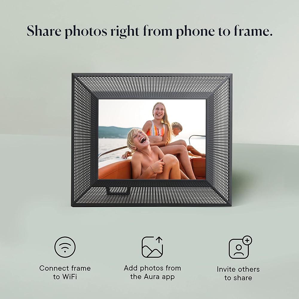 إطار صورة رقمي بتقنية WiFi من Aura Smith | أفضل إطار رقمي للهدايا | أرسل الصور من هاتفك | عرض 2K | إعداد سريع وسهل في تطبيق Aura | تخزين مجاني غير محدود | (العقيق الأسود)