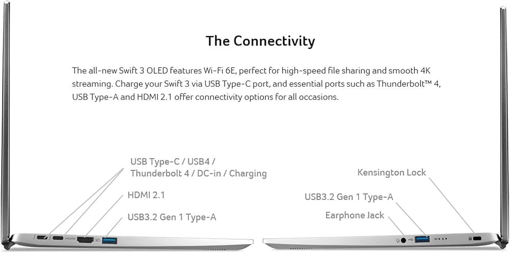 دلل عينيك: شاشة Swift Go مقاس 14 بوصة بدقة 1920 × 1200 IPS - توفر دقة ألوان زاهية وألوان سوداء عميقة بشكل ملحوظ وجودة صورة فائقة الوضوح وشاشة تعمل باللمس إذا كنت تفضل النقر والتمرير.