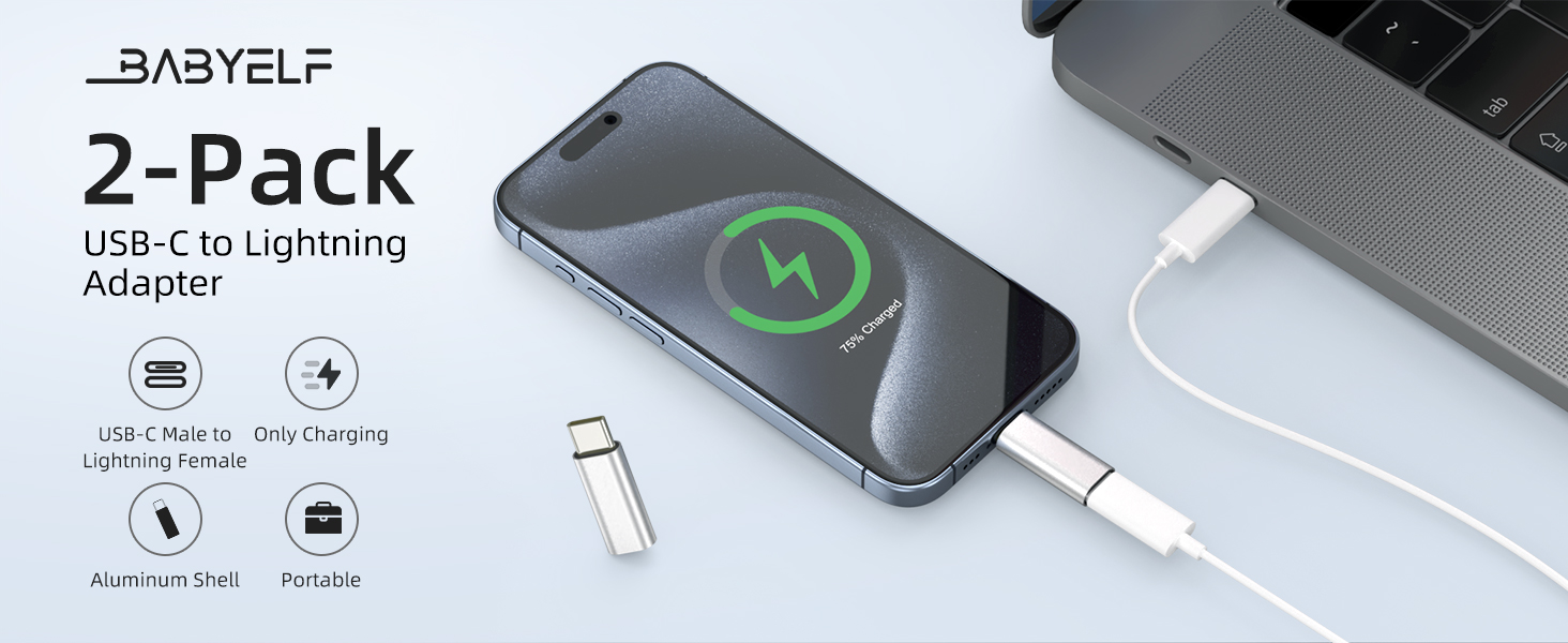 محول BabyElf USB-C إلى Lightning، عبوتان فقط لشحن محول USB C ذكر إلى Lightning أنثى متوافق مع iPhone 15 Series Galaxy S23 Note 20 Pixel 8 والمزيد من الأجهزة من النوع C، فضي