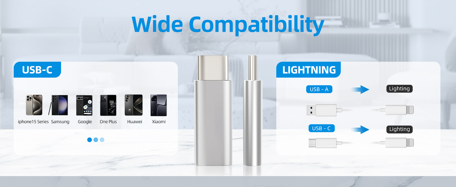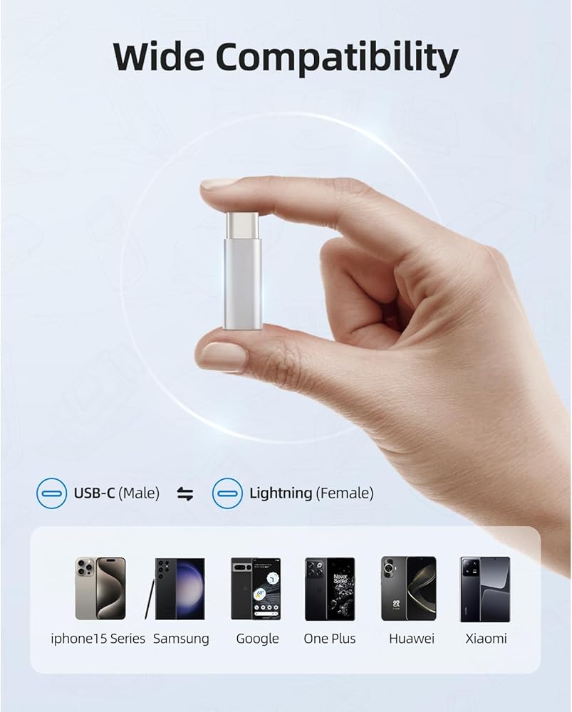 【محول الإضاءة إلى النوع C】: إضاءة مثالية لمحول USB-C الذي يدعم أجهزة USB-C (أجهزة الكمبيوتر المحمولة/الأجهزة اللوحية/الهواتف الذكية) المتصلة بكابل الإضاءة. يدعم تيار الشحن حتى 5 فولت 1.5 أمبير.