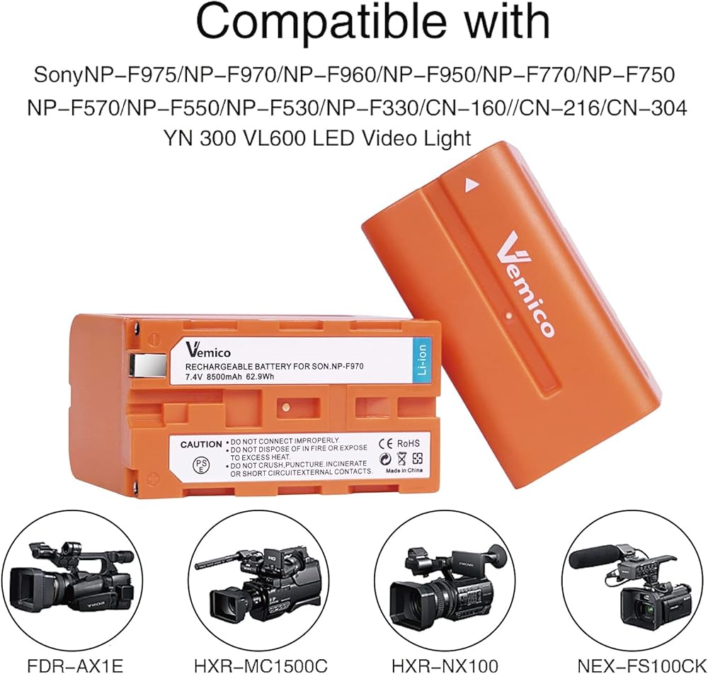 • توافق واسع: بطارية NP-F970 L-Series القابلة لإعادة الشحن: متوافقة بنسبة 100% مع بطاريات Sony NP-F550 570 750 770 970 960 975 وكاميرات Sony Handycams ومصباح فيديو LED والشاشة الميدانية التي تستخدم بطارية F970/F550.