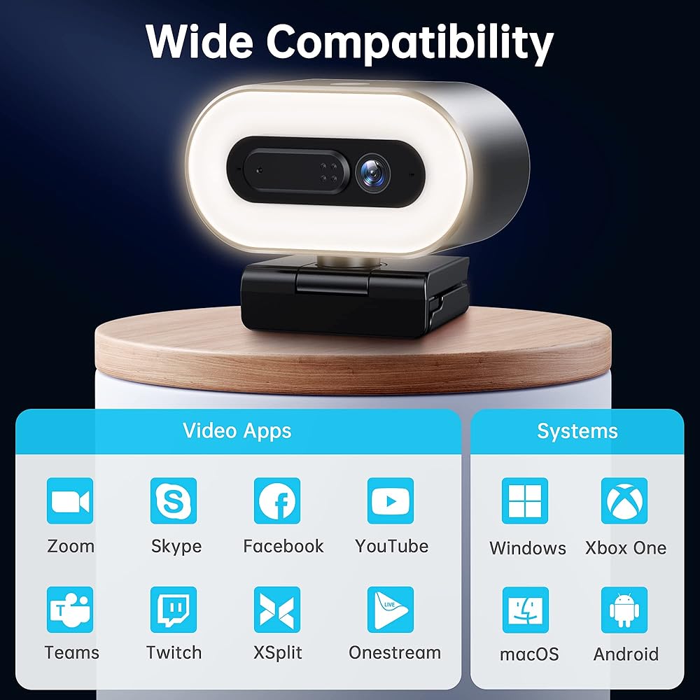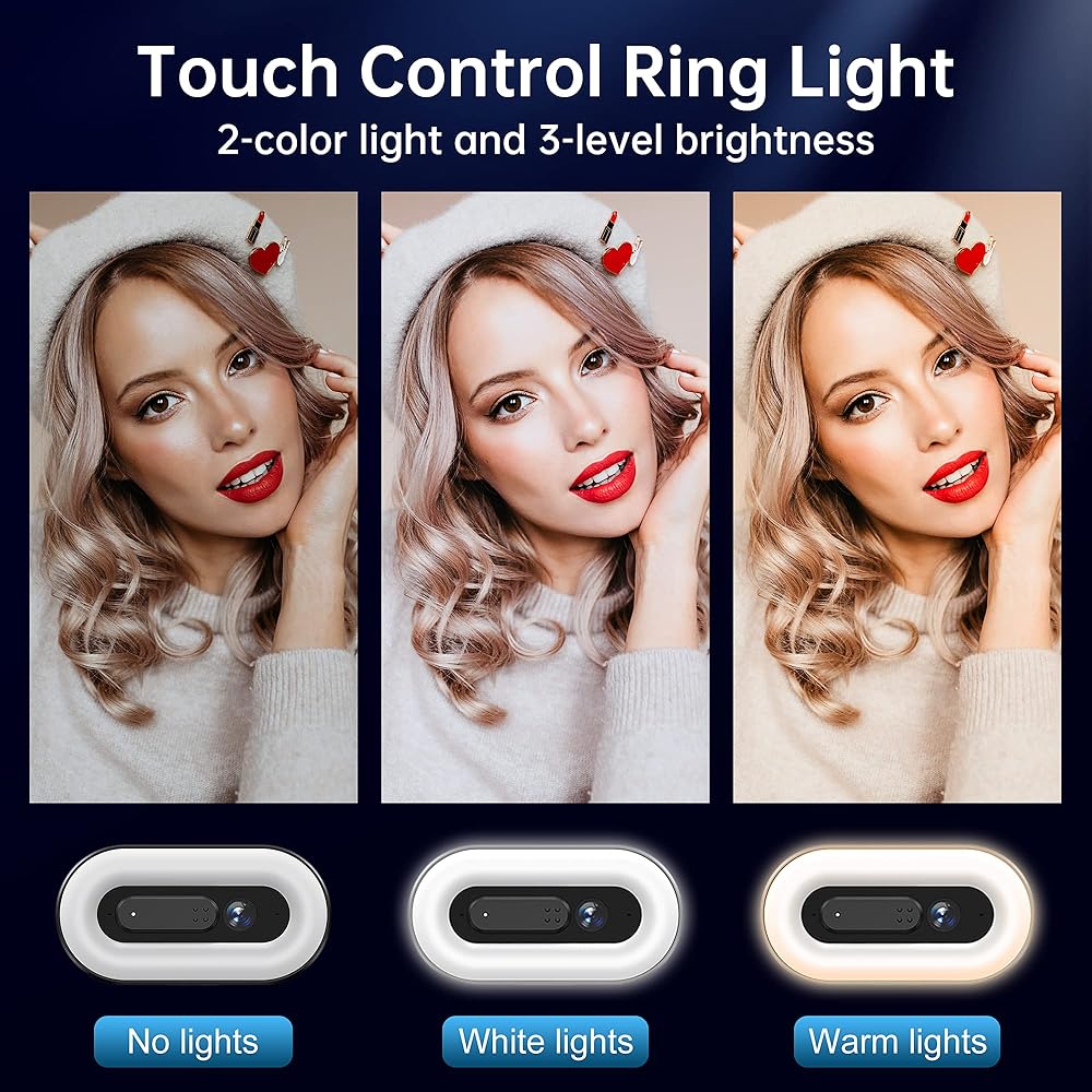 حلقة إضاءة سيلفي 💡: يحتوي الضوء الحلقي لكاميرا الويب G920 المتدفقة على 3 مستويات من السطوع القابل للتعديل ويمكن أن يعمل في وضع الإضاءة البيضاء أو الدافئة، مما يجعل صورك أكثر إشراقًا وجمالاً.