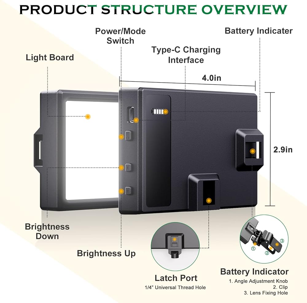 بطارية مدمجة قابلة لإعادة الشحن: اعتماد بطارية عالية الجودة، يتم شحن هذا الضوء المحمول للتصوير الفوتوغرافي بسهولة عن طريق كابل micro-USB، أو مدخل من النوع c، أو معظم الأجهزة التي تدعم منافذ USB/Type-C، مثل أجهزة الكمبيوتر المحمولة وأجهزة الكمبيوتر الشخصية وبنوك الطاقة وشواحن USB وشواحن السيارات وما إلى ذلك. بمجرد شحنها بالكامل، يمكن أن يدوم ضوء الكاميرا حوالي ساعتين لتستمتع بالتصوير الفوتوغرافي!