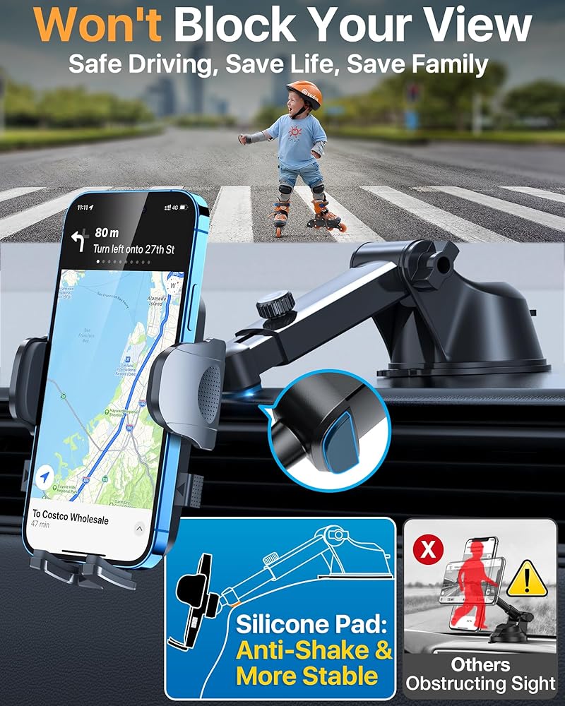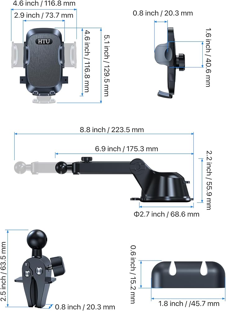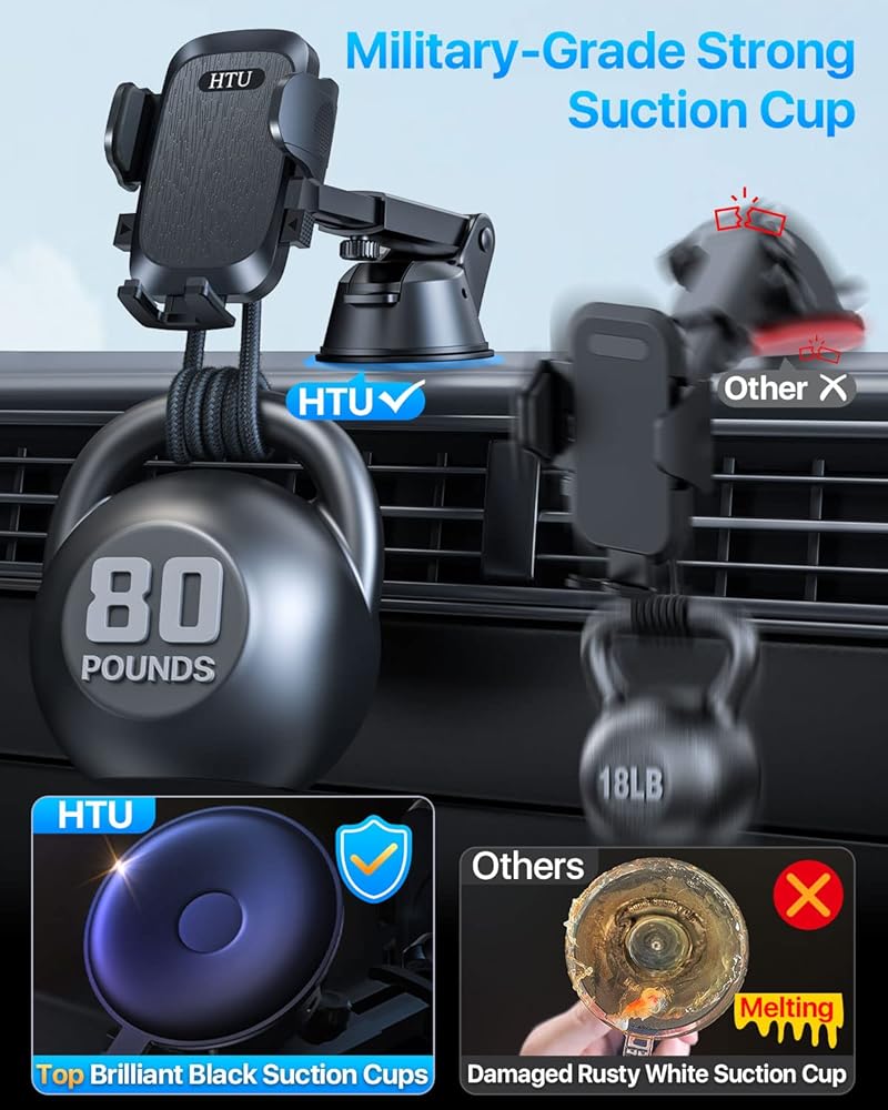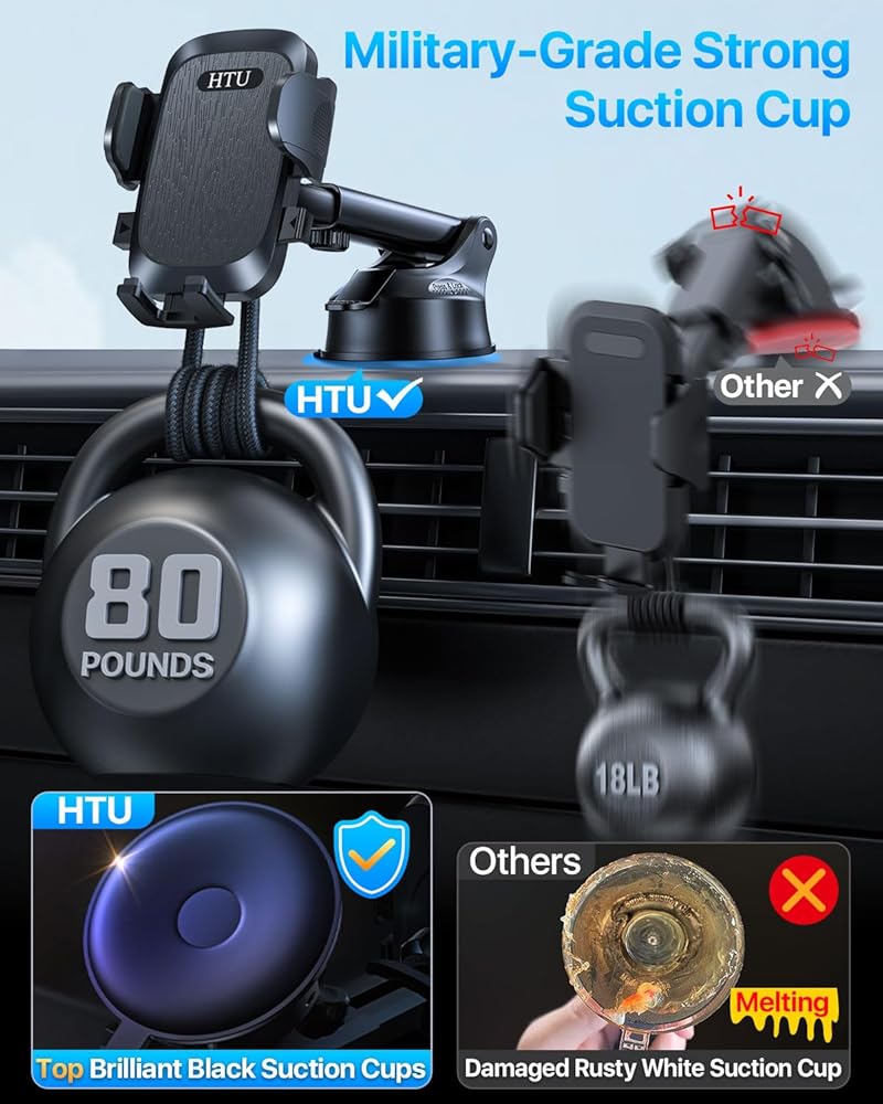 • ►[رؤية بدون عائق] يحتوي حامل هاتف السيارة المحسن من HTU على مفصل كروي 360 درجة وذراع تلسكوبي قابل للتعديل، بحيث يكون الهاتف المحمول في متناول اليد بسهولة، والتنقل المريح، والرد على المكالمات. لا يعيق رؤيتك أثناء القيادة. يمكنك التركيز على القيادة، وسيقوم حامل الهاتف المحمول HTU بالباقي نيابةً عنك.