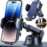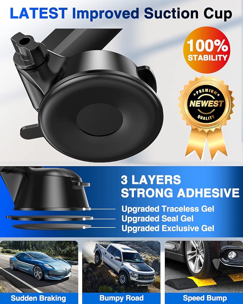 2024 Ultimate Car Phone Mount 【80+LBS أقوى شفط ومن الدرجة العسكرية 】 【شهادات براءات الاختراع والسلامة】 حامل الهاتف الخلوي شاحنة لتنفيس الزجاج الأمامي للوحة القيادة لهاتف iPhone 15 Pro Max 14 13 Samsung، أسود