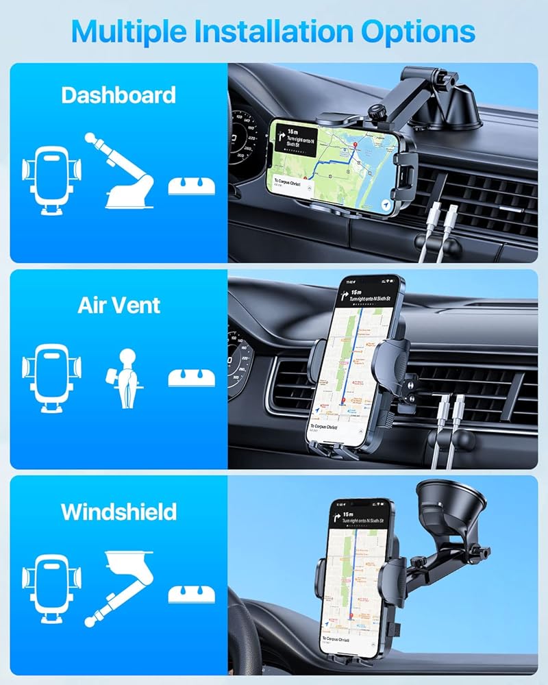 • 📢[5 تقنيات أصلية - بفضل صوت الملايين من المستخدمين] ① مقاومة الطقس القصوى -40 ~ 203 درجة فهرنهايت من البلاستيك الثمين ② قوة شفط رائدة تصل إلى 80-88 رطل ③ 3 طبقات من جل النانو اللزج ④ مشبك ذو قلب فولاذي: 20X ثابت ومتين.⑤.إدارة الكابلات الخالية من التشابك: يحمل الحامل كابل شحن هاتفك الذكي، مما يساعد على ضمان بقاء الكابل متصلاً وخاليًا من التشابك.