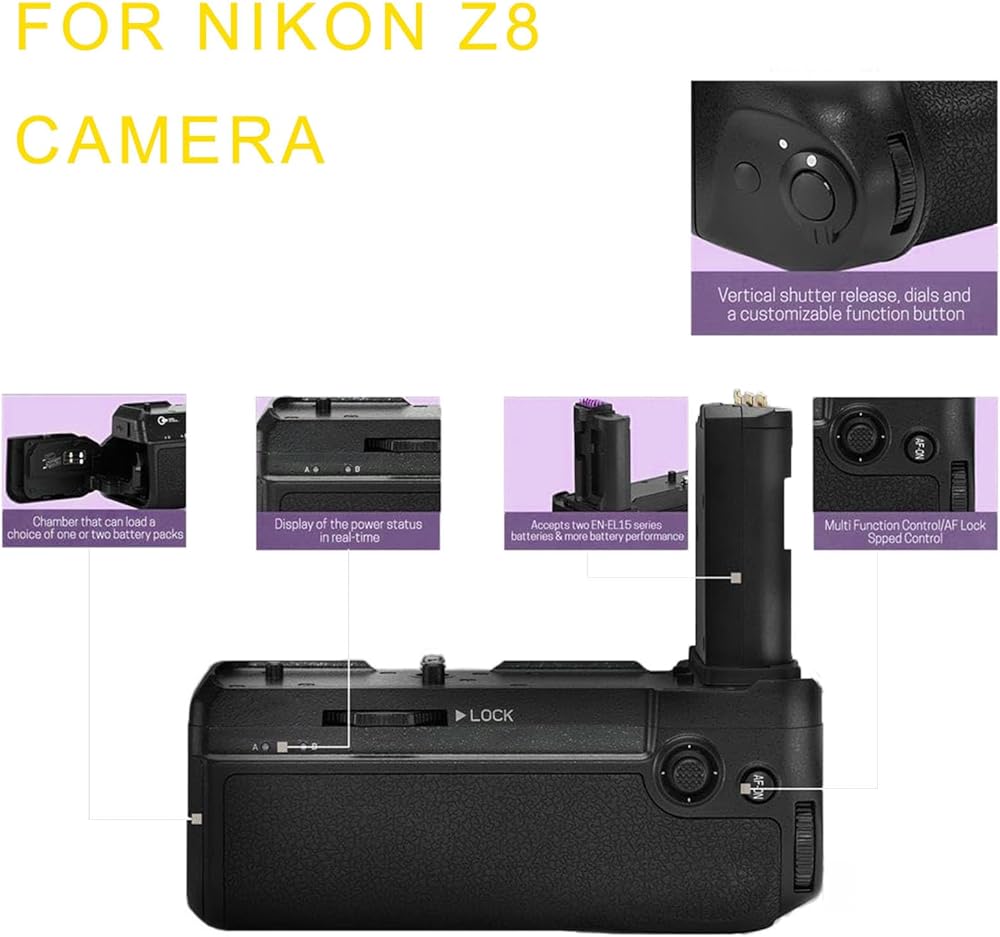 1.Compatible with the Z8, up to two EN-EL15c lithium-ion battery packs can be installed, allowing you to increase the number of photos taken and extend video recording time.