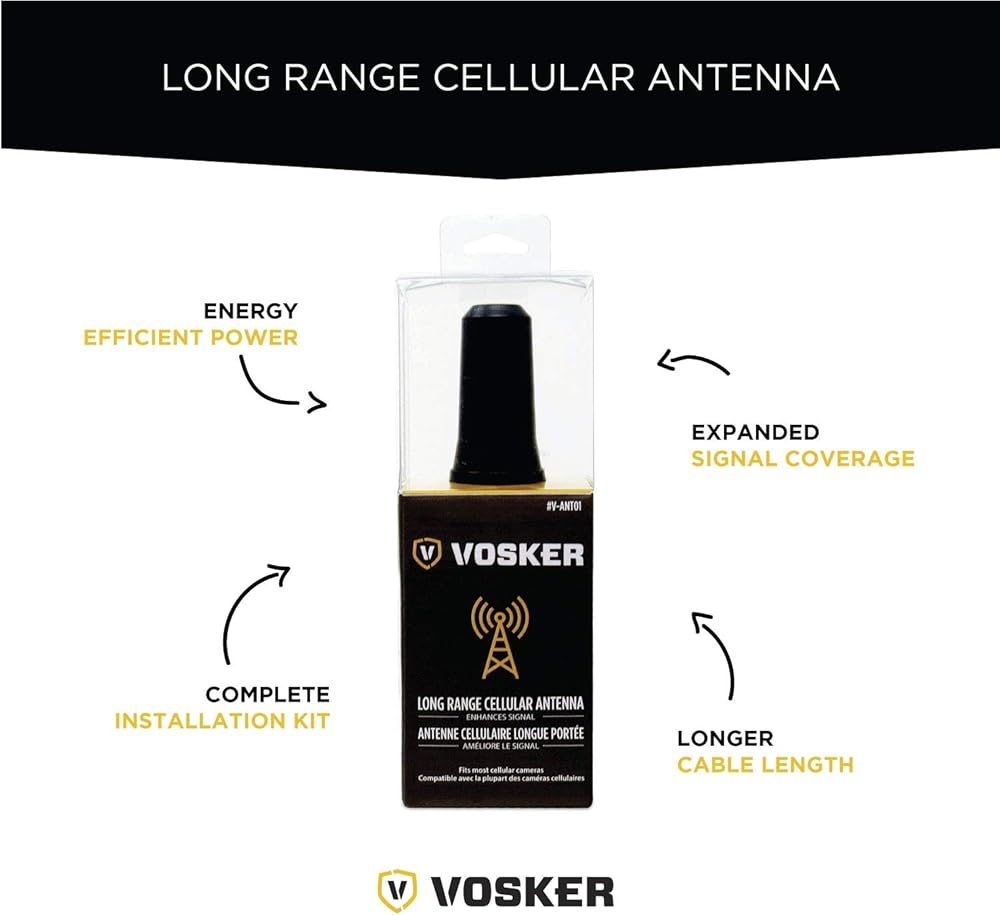 دعم الكاميرا الخلوية العالمية: مصمم لكاميرات Vosker V100 وV200، يعمل هوائي Vosker الخلوي طويل المدى بسلاسة مع مجموعة متنوعة من الكاميرات الخلوية الشهيرة.