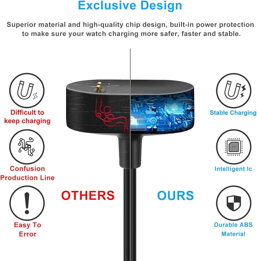 السلامة والشحن السريع والأداء المستقر: مادة فائقة الجودة وتكوين شريحة عالية الجودة، وحماية مدمجة للطاقة للتأكد من أن شحن ساعتك أكثر أمانًا وأسرع واستقرارًا. قم بحماية جهازك من التلف الناتج عن الجهد الزائد والتيار الزائد عند الشحن.