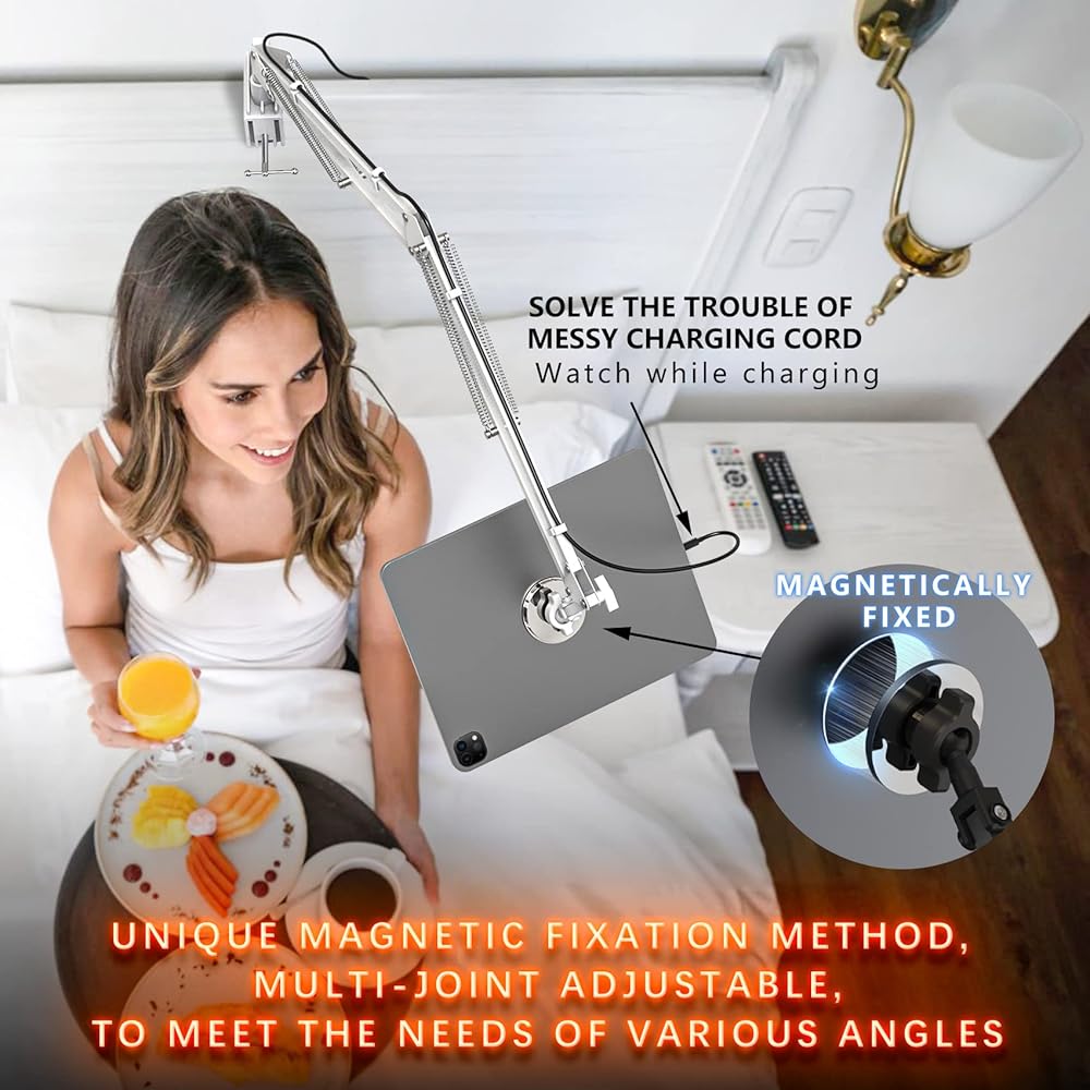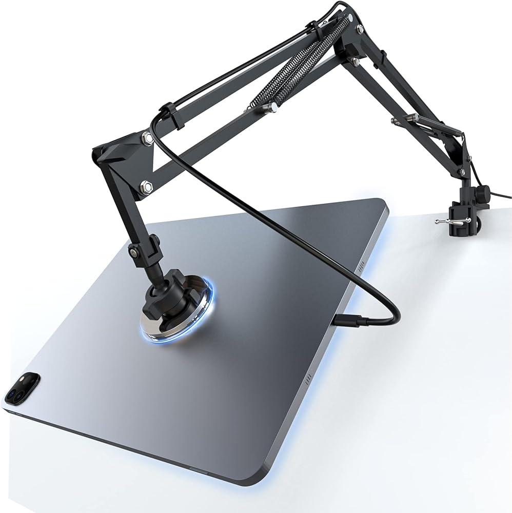 حامل حامل الكمبيوتر اللوحي المغناطيسي، CACENCAN 2022 حامل كمبيوتر لوحي مصمم بكل القلب، دوران 360 درجة، ليس بمشبك ولكن مغناطيسي، حامل كمبيوتر لوحي بذراع متأرجح صناعي، متوافق مع iPad/جميع الأجهزة اللوحية/Switch/Kindle