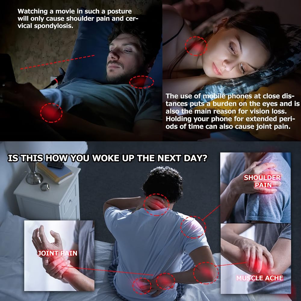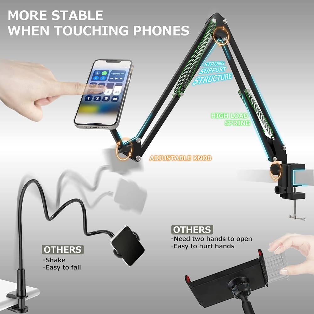 ✹ حرر يديك - يمكن تركيبه عموديًا على الطاولة أو أفقيًا على جانب السرير، مما يحرر يديك لإجراء مكالمات الفيديو أو الاجتماعات أو الأفلام أو البث المباشر أو الدراسة أو القراءة. مثالي لأي مكان مثل غرفة النوم أو المطبخ أو صالة الألعاب الرياضية أو المكتب.