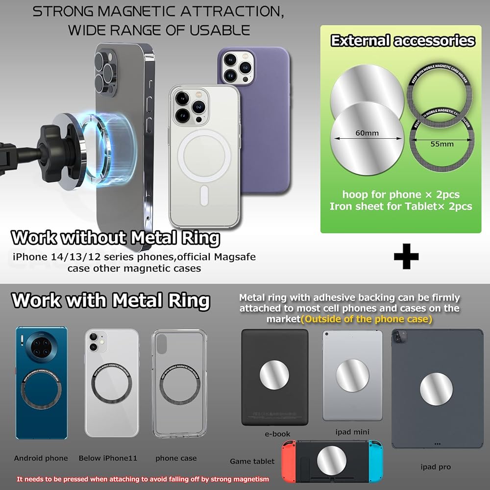 ✹ ينطبق على جميع الأجهزة اللوحية والهواتف الخلوية - مناسب لجميع أجهزة ipad وiphone وSwitch وSamsung Tabs وKindle وLG وGoogle Pixel وMotorola وNokia وHuawei وHTC وأي أجهزة لوحية أو هاتف آخر. (يأتي مع رقعتين معدنيتين للأجهزة اللوحية و2 رقعة حلقة معدنية للهاتف المحمول. ويدعم أيضًا Mag-safe.)