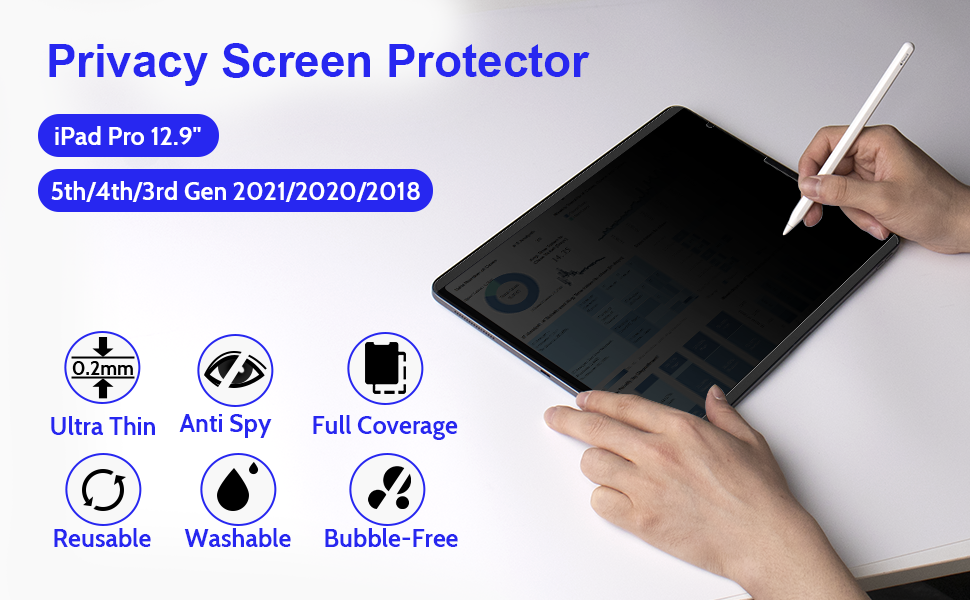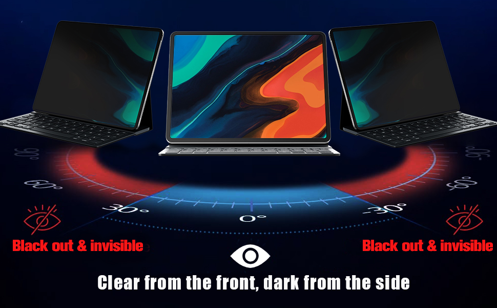 🔒【مضاد للتجسس】من خلال مرشح مبتكر ثنائي الاتجاه، يوفر واقي شاشة الخصوصية هذا خصوصية كاملة للشاشة ويحافظ على معلوماتك الحساسة والخاصة مخفية عن الغرباء في الأماكن العامة عند مشاهدة iPad في الوضع الأفقي بينما يحمي عينيك أيضًا عن طريق حجب الضوء الأزرق بنسبة 35%. وتخفيف إجهاد العين.