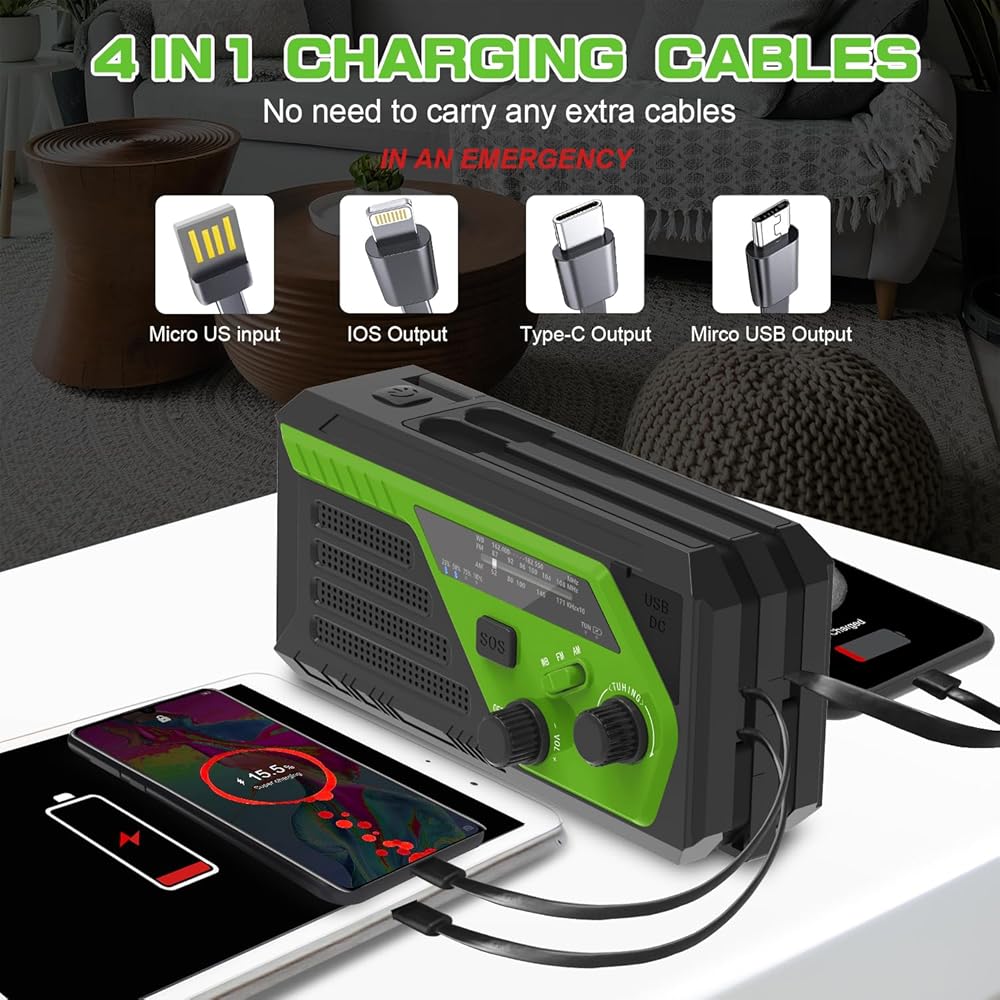 • ✧[أول راديو للطوارئ مع كابلات شحن 4 في 1] كابل إخراج ميكرو مدمج من النوع C وكابل متوافق مع iPhone يدعم شحن جميع الأجهزة الذكية تقريبًا. أحدث تصميم فريد ومريح لتخزين الكابلات، وقد أثبت أكثر من 5000 اختبار ثني متانته ومقاومته للتمزق. إذا كنت لا ترغب في إحضار كابلات إضافية، فإن راديو الطقس المحمول 4 في 1 هو الخيار الأفضل. مع كابل الشحن من النوع C، يمكنه شحن ما يصل إلى 4 أجهزة في حالة الطوارئ في وقت واحد.