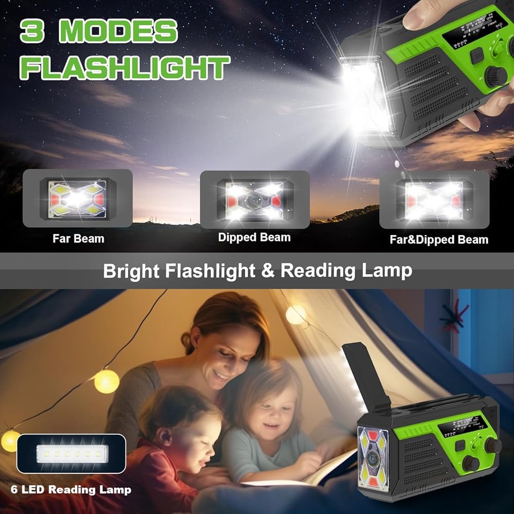 • ✧ 【المزيد من مصادر الإضاءة 3 أوضاع مصابيح LED ومصباح القراءة】تم ترقية راديو مصباح الطوارئ في حالات الطوارئ بمزيد من مصادر الإضاءة بإجمالي 21 مصباح LED والتي تنتج سطوعًا عاليًا، و3 أوضاع مصباح يدوي: الشعاع البعيد، والشعاع المغمس، والشعاع البعيد والمغمس. كما يوفر مصباح القراءة 6 LED إضاءة واسعة للعب والقراءة. من الضروري أن يكون لديك نسخة احتياطية خفيفة إذا كنت تقيم في مكان يعاني من انقطاع التيار الكهربائي بشكل متكرر. مزود بزر SOS للطوارئ، والذي يمكنه تنشيط إنذار SOS بصوت عالٍ عن طريق الضغط عليه.