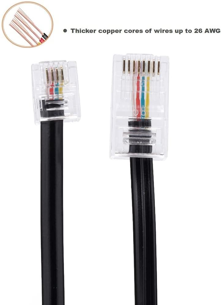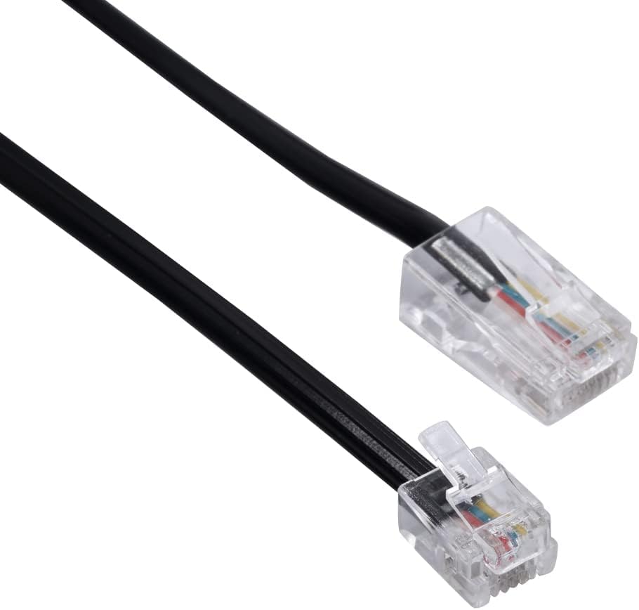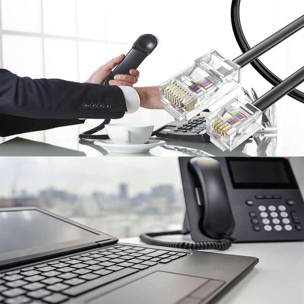 [تطبيق واسع]، موصل 6p4c. تأتي أسلاك الهاتف هذه للهاتف الأرضي مع موصلي هاتف قياسيين RJ11 من كلا الطرفين، والتي يمكن استخدامها للهواتف وأجهزة الفاكس وأجهزة المودم وأجهزة الرد وما إلى ذلك.