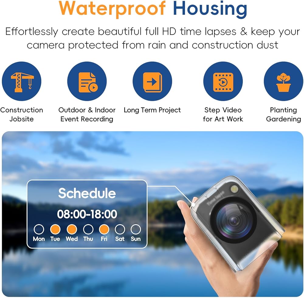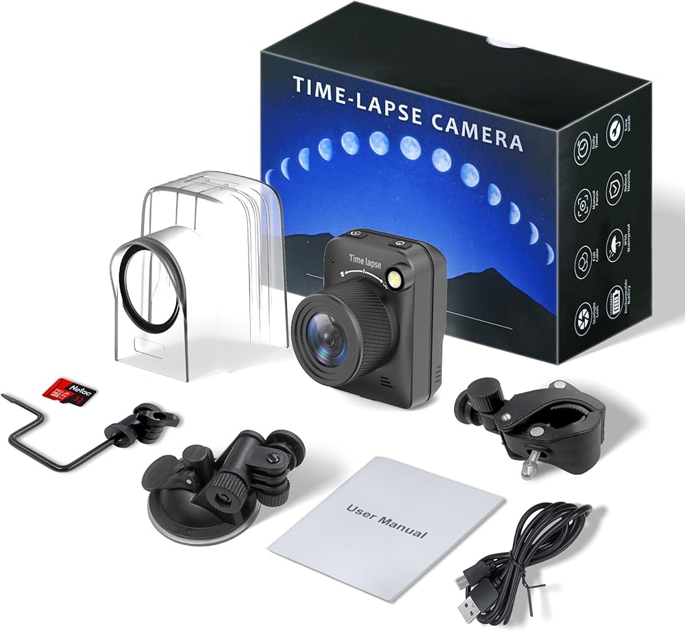معدات احترافية بحماية IP66 وغطاء مقاوم للماء يسمح لك باستخدام هذه الكاميرا في الأماكن المغلقة أو الهواء الطلق. تحتوي العبوة على: كاميرا فاصل زمني ، دعامة مصاصة ، دعامة أنبوبية دائرية ، دعامة مسمار ، غطاء مقاوم للماء ، بطاقة SD ، كابل USB ، دليل المستخدم.