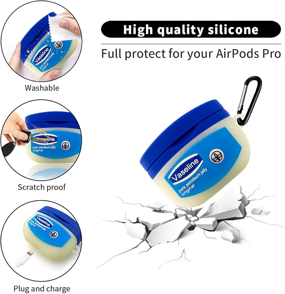 وكنايد حافظة زجاجة زرقاء، مجموعة ملحقات 6 في 1 غطاء واقي من السيليكون، تصميم شخصية مرحة ثلاثية الابعاد، مع سلسلة مفاتيح للاطفال والنساء والرجال لحافظة ايربودز برو - 2019 (فازلين)
