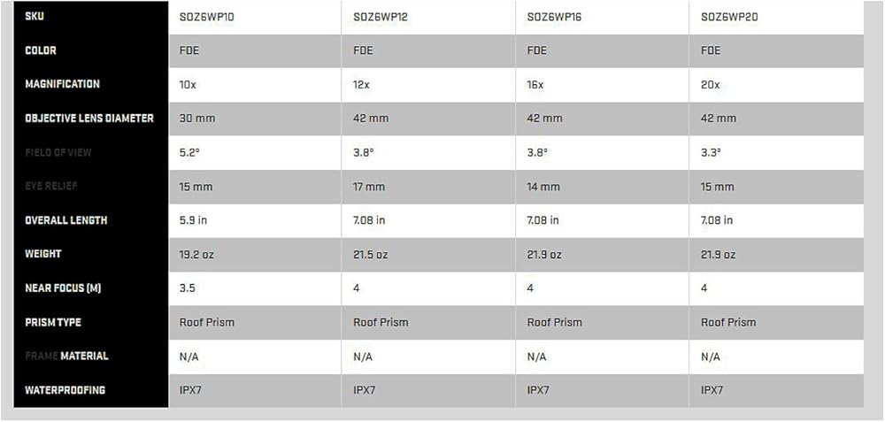 نقل الضوء المعزز - تم تحديثه باستخدام عدسات SIG SAUER'S HDX الزجاجية، ينتج ZULU6 HDX HUNTING BINOCULAR نقلًا محسنًا للضوء ودقة وتعريفًا لوضوح بصري لا مثيل له؛ متوفر بتكبير 10x و12x و16x و20x