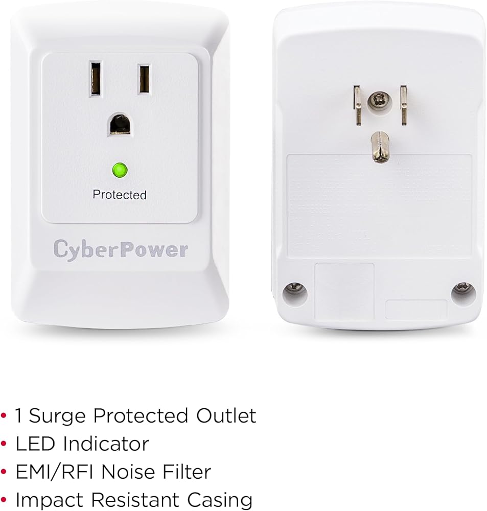 CyberPower CSB100W جهاز حماية من التيار المفاجئ، 900J/125 فولت، منفذ واحد، صنبور حائط