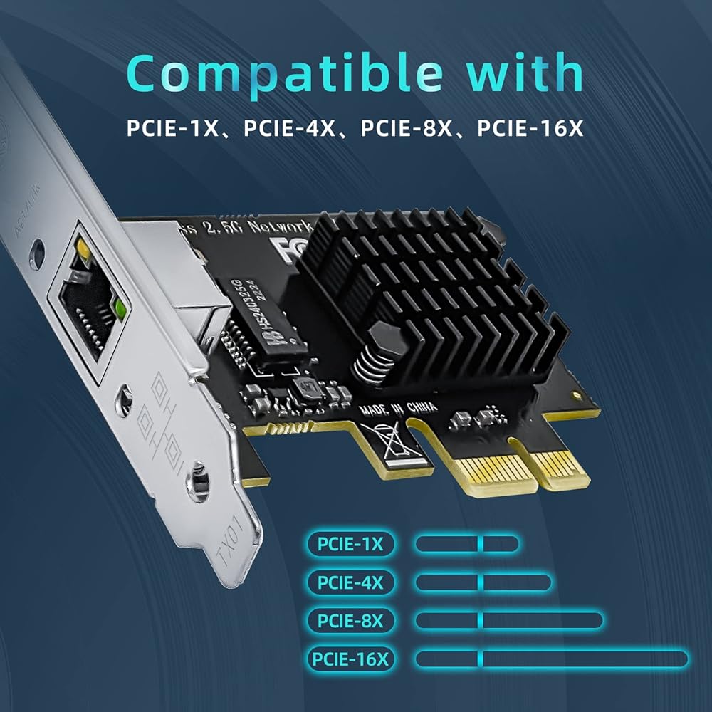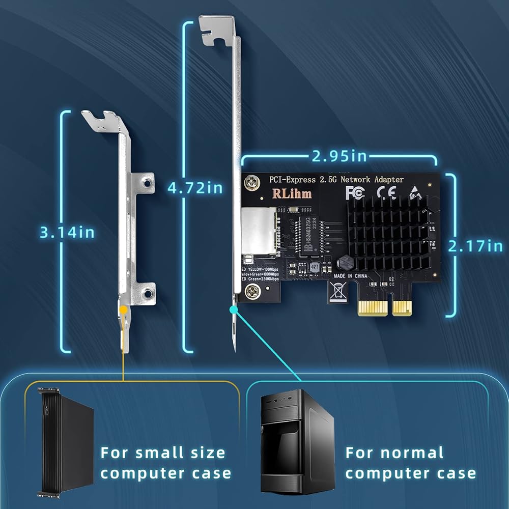 محول شبكة 2.5GBase-T بمنفذ PCIe وبطاقة ايثرنت 2.5GB RLihm 2.5gb ومنفذ شبكة LAN RJ45 و2500/1000/100 ميجابت لكل ثانية ومنفذ واحد للالعاب والمكتب يدعم ويندوز/لينكس مع شريحة تعريف I225-V