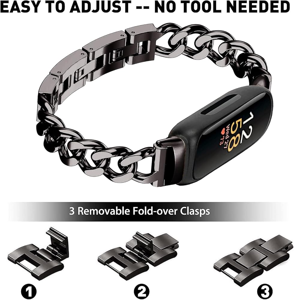 عصابات رائعة لـ Fitbit Inspire 3 Bands Women، أحزمة بديلة لسوار معصم معدني من الفولاذ المقاوم للصدأ قابلة للتعديل متوافقة مع جهاز تتبع اللياقة البدنية Fitbit Inspire 3