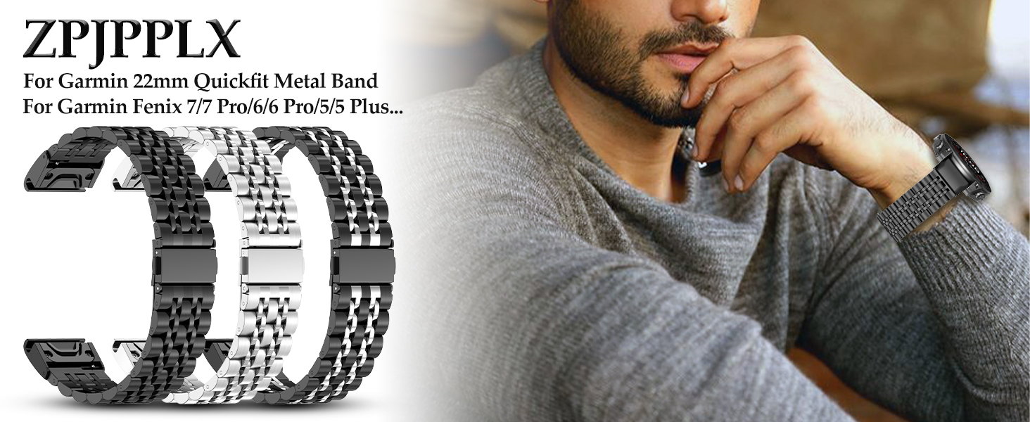 ZPJPPLX سوار ساعة معدني 22 مم لـ Garmin Fenix ​​7 Pro/7/6 Pro/6، حزام Quickfit من الفولاذ المقاوم للصدأ لـ Fenix ​​5 Plus/5/Forerunner 965/955/945/935/Descent G1/Approach S62/Quatix5