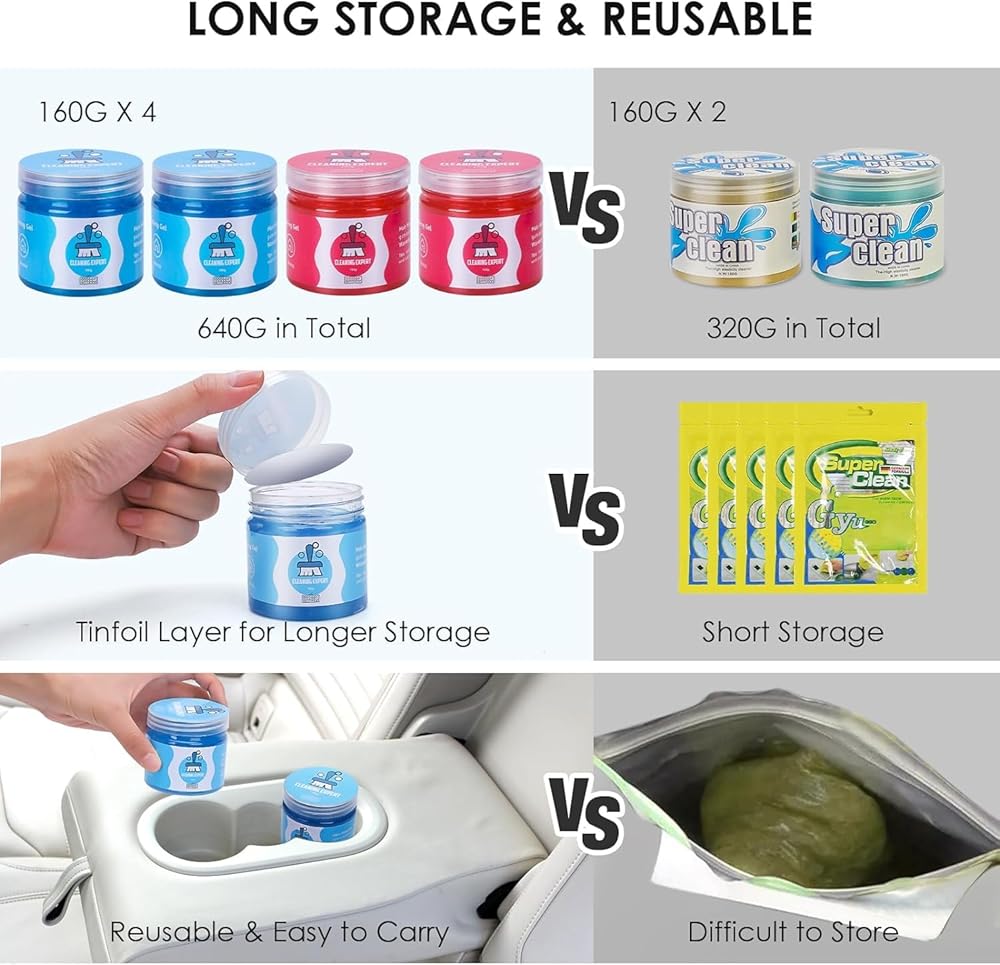 جل تنظيف السيارة من بيدي، 4 عبوات من مجموعات التنظيف العالمية لأداة تفصيل السيارة، معجون تنظيف السيارة القابل لإعادة الاستخدام للوحة مفاتيح الكمبيوتر، فتحة تهوية السيارة، لوحة القيادة، منفضة سجائر