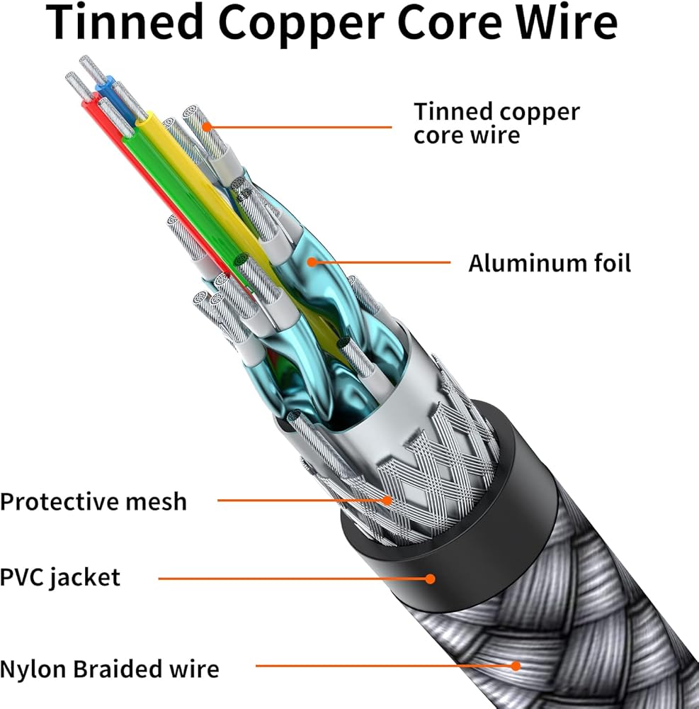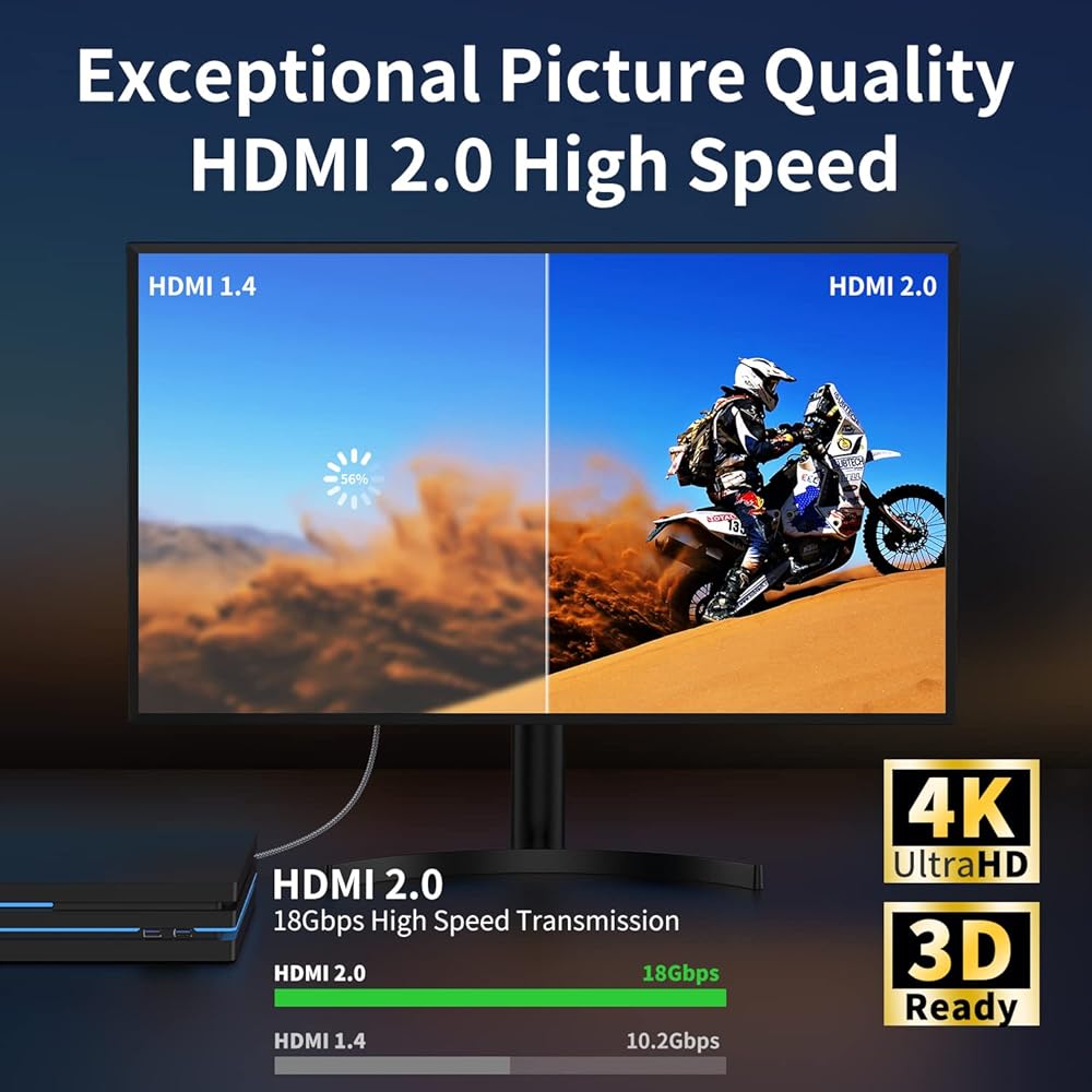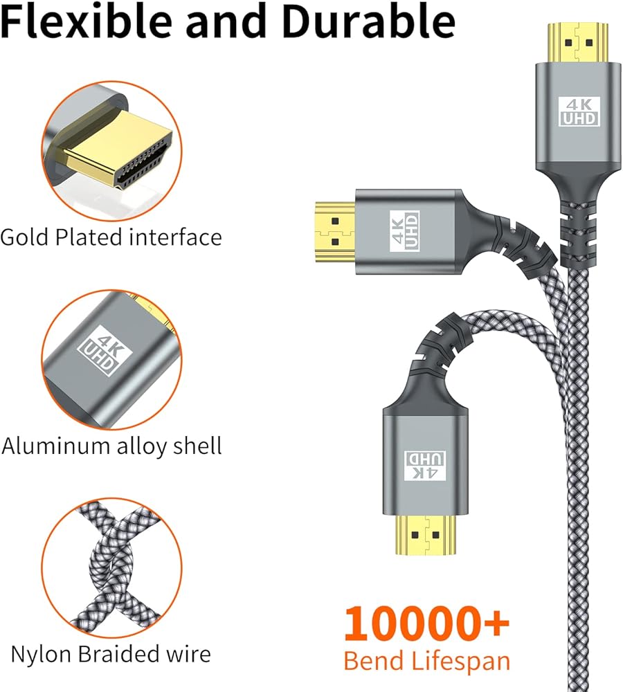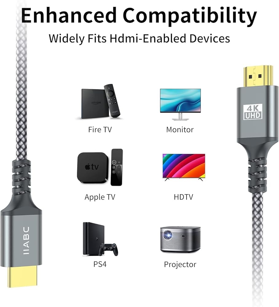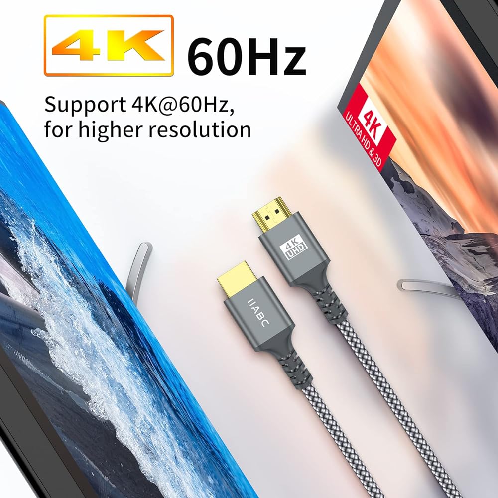 ⚡[كابل HDMI IIABC 4k بطول 3.3 قدم] كابل HDMI مبتكر 4K، مصمم بموصلات مطلية بالذهب، ورقائق أمريكية عالية الجودة لضمان نقل إشارة عالي السرعة وخالي من العيوب، تقنية 4K*2K Ultra HD بدقة تصل إلى 3840 × 2160 @ 60 هرتز، يدعم فيديو 4K، بما في ذلك فيديو ثلاثي الأبعاد ومتعدد العرض. Full HD، 1080p، HDR، استمتع بجودة صوت تلفزيون فائقة الوضوح مع الاستمتاع بألوان عميقة وصور عالية الدقة، يوفر لك أفضل تجربة بصرية فائقة الوضوح .