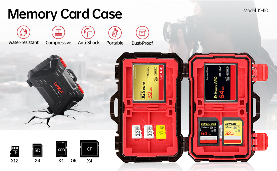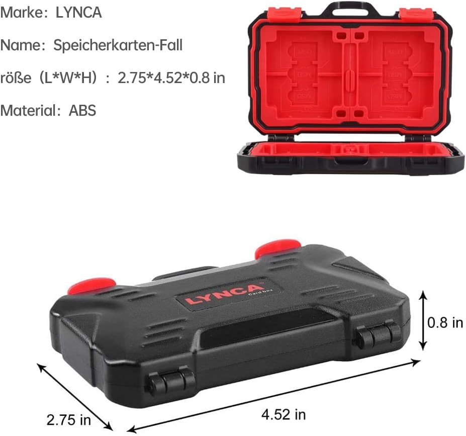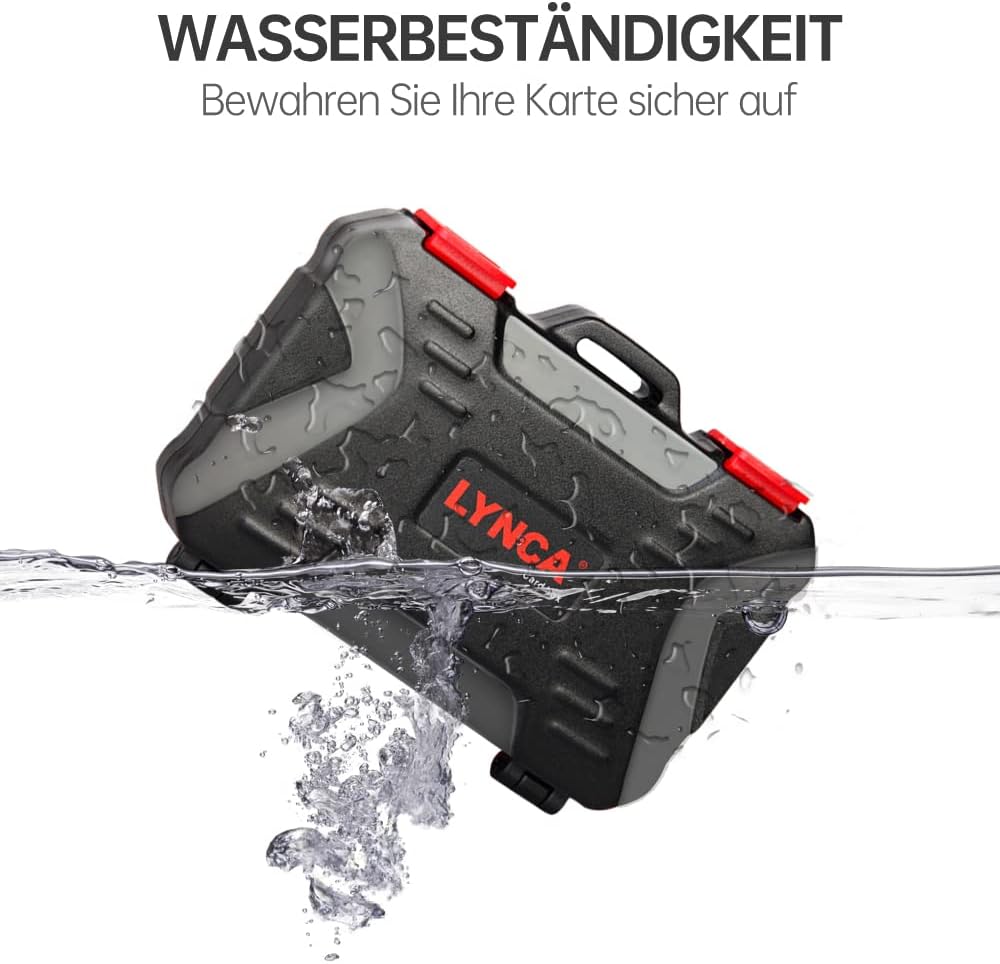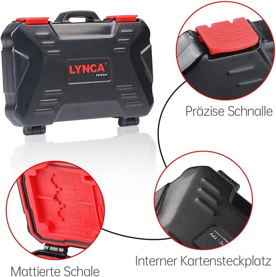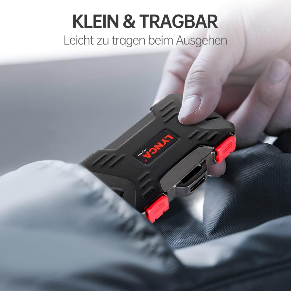 【نظام قفل】سهل الفتح أو الإغلاق بلمسة واحدة. آلية مفصلة معززة مزدوجة، غلاف خارجي صلب مقاوم للصدمات لمعظم بطاقات الذاكرة