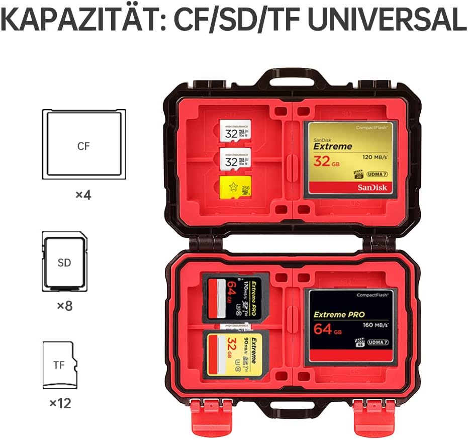 【السعة القصوى】يمكن لصندوق بطاقات الذاكرة استيعاب 8 بطاقات اس دي و4 بطاقات سي اف و12 بطاقة تي اف (مايكرو اس دي)، بإجمالي 24 بطاقة.