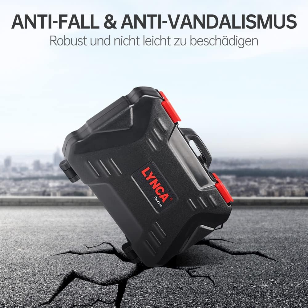 【مقاومة للماء ومضادة للصدمات】مصنوعة من مادة ايه بي اس، قوية ومتينة. حلقة إغلاق صندوق تخزين بطاقة الذاكرة مصنوعة من السيليكون المتقدم. غلاف خارجي واقٍ صلب لمعظم بطاقات الذاكرة.