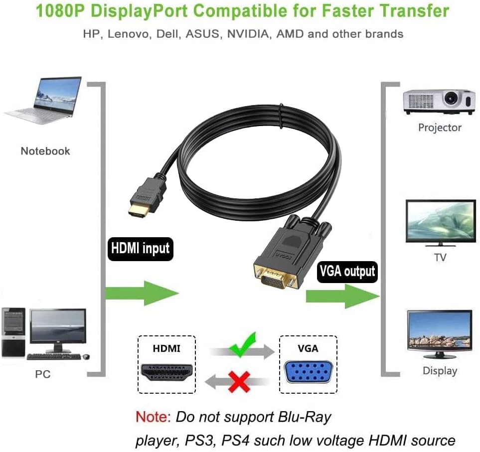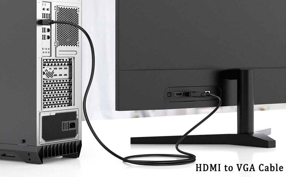 يوفر كيبل HDMI إلى VGA حلاً سهلًا وفعالًا من حيث التكلفة، لتوصيل سطح المكتب أو اللاب توب أو الأجهزة الأخرى المزودة بمنفذ HDMI بشاشة VGA مثل الشاشة أو جهاز العرض أو التلفزيون
