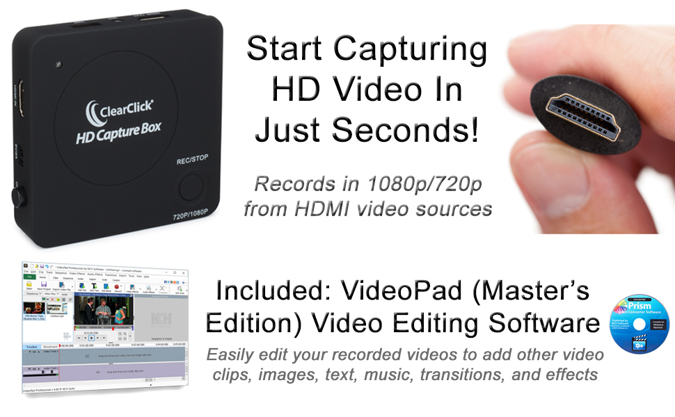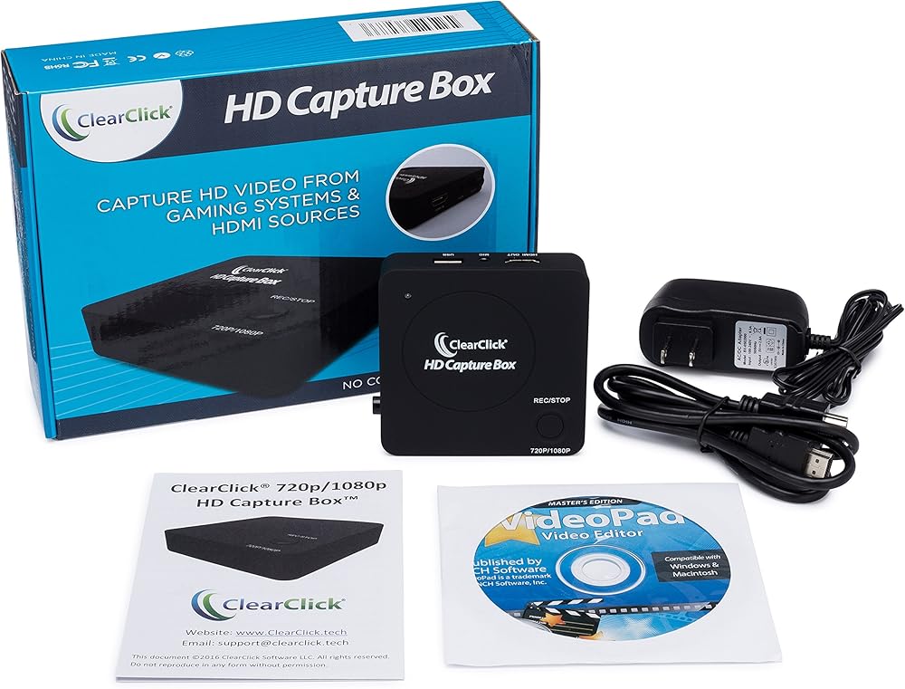 التقط فيديو بدقة 1080 بكسل/720 بكسل (مع الصوت) من أجهزة الألعاب ومصادر HDMI - لا يتطلب جهاز كمبيوتر (يتضمن كابل HDMI)