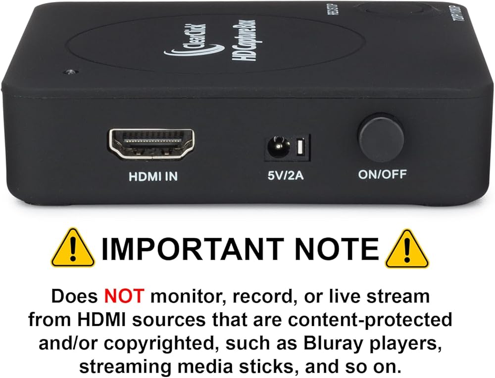 *** مهم جدا! يرجى القراءة بالكامل قبل الشراء! شكرًا لك! *** 1) لا يقوم هذا الجهاز بالتسجيل أو المرور من المصادر التي تم تمكين HDCP (حماية المحتوى)، بما في ذلك العديد من مصادر HDMI مثل أجهزة الكمبيوتر ومسجلات الفيديو الرقمية ومشغلات DVD وما إلى ذلك. لن يُظهر الجهاز أي إشارة من هذه المصادر. لا يشير هذا إلى وجود جهاز معيب، بل يشير إلى أن المصدر الخاص بك يحتوي على HDCP. 2) هذا الجهاز لا يدعم البث المباشر. إنه يعمل كجهاز مستقل فقط ولن يتصل بجهاز كمبيوتر شخصي أو جهاز Mac.