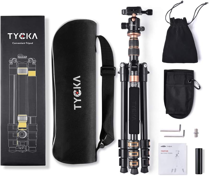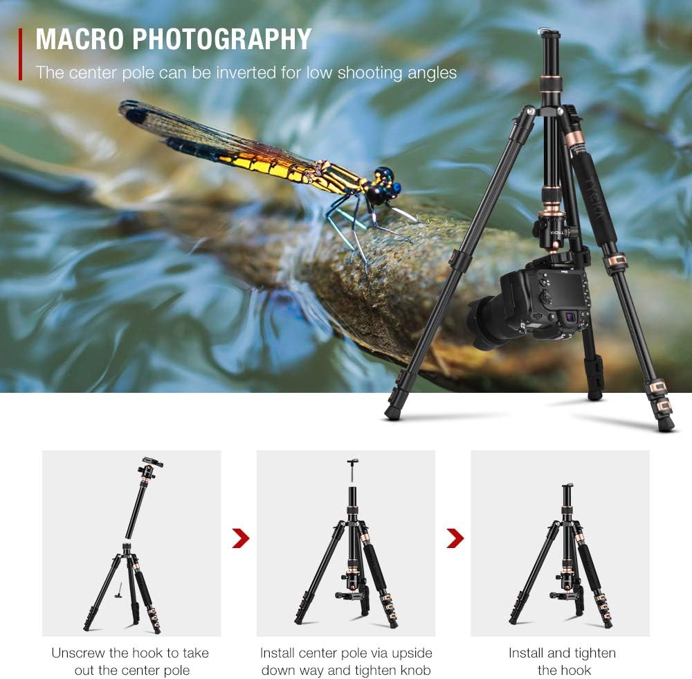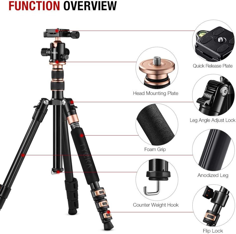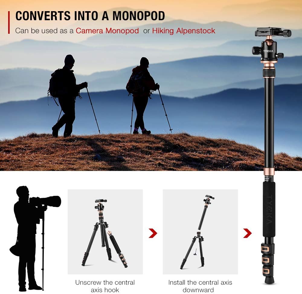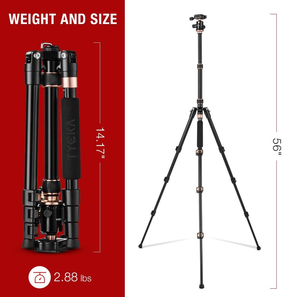 تي واي سي ايه حامل ثلاثي القوائم للكاميرا مقاس 56 انش، حامل ثلاثي القوائم خفيف الوزن من الالومنيوم للسفر، حامل احادي القوائم مدمج لكاميرا دي اس ال ار مع راس كروي 360 درجة، لوحة سريعة التحرير، شنطة حمل