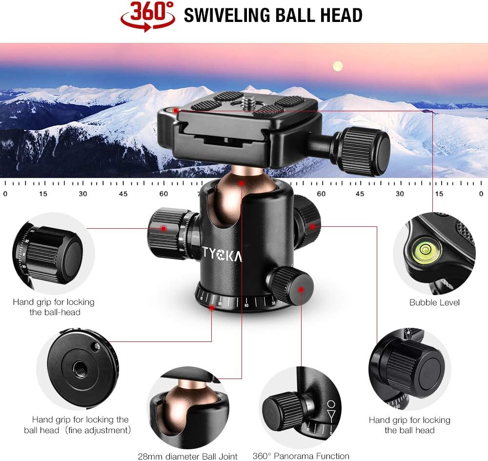 • ➽ بانوراما 360 درجة وثبات فائق: مع مقبضي تحكم مستقلين، يمكن للرأس الكروي المصمم خصيصًا الدوران 360 درجة مما يسمح لك بالحصول على تلك اللقطة المثالية في كل مرة. تم تصميم شوكة الحامل ثلاثي القوائم باستخدام آلة سي ان سي الدقيقة لضمان أعلى جودة للبناء.