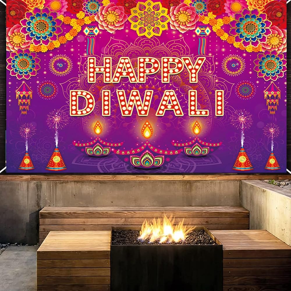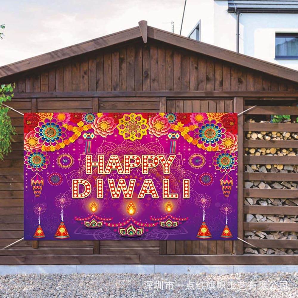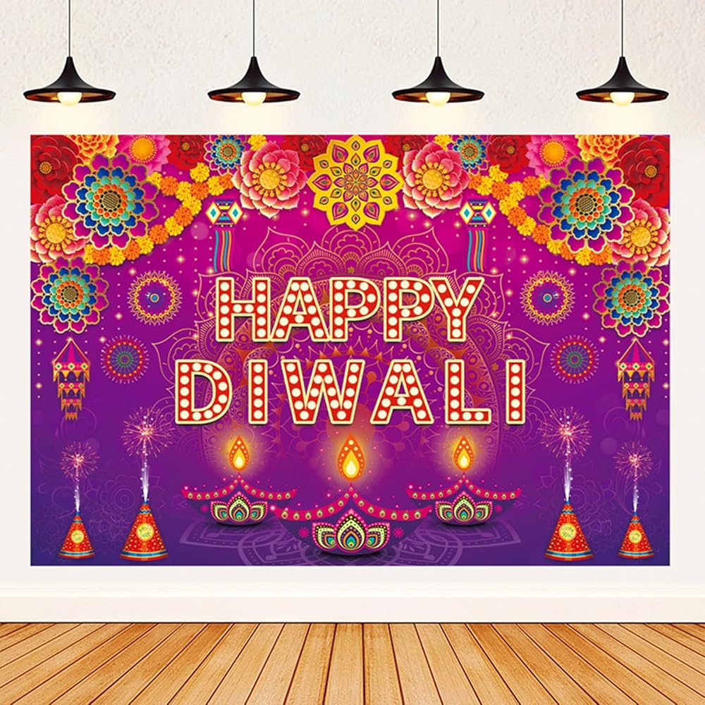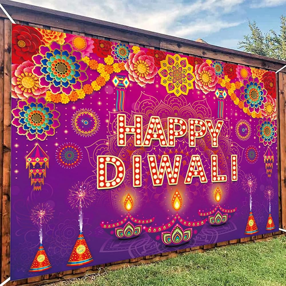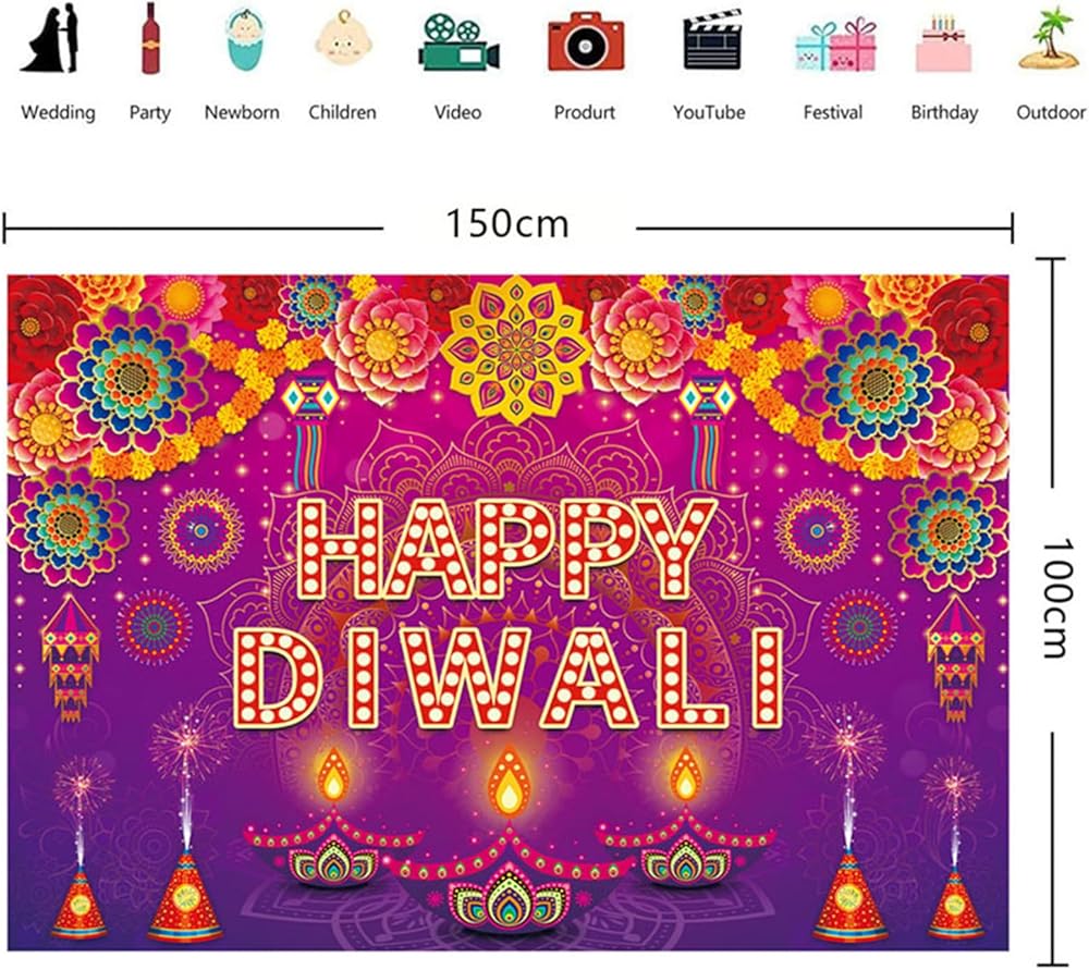 Large Size Diwali Backdrop - This Happy Diwali backdrop banner comes with a large size of about 150 x 100cm/59 x 39.4 inches, and along with 20 feet rope, we designed grommet implanted on each corner, so it's convenient for you to decorate or hang this Diwali backdrop on anywhere you like.