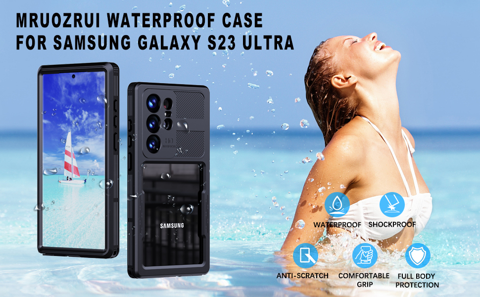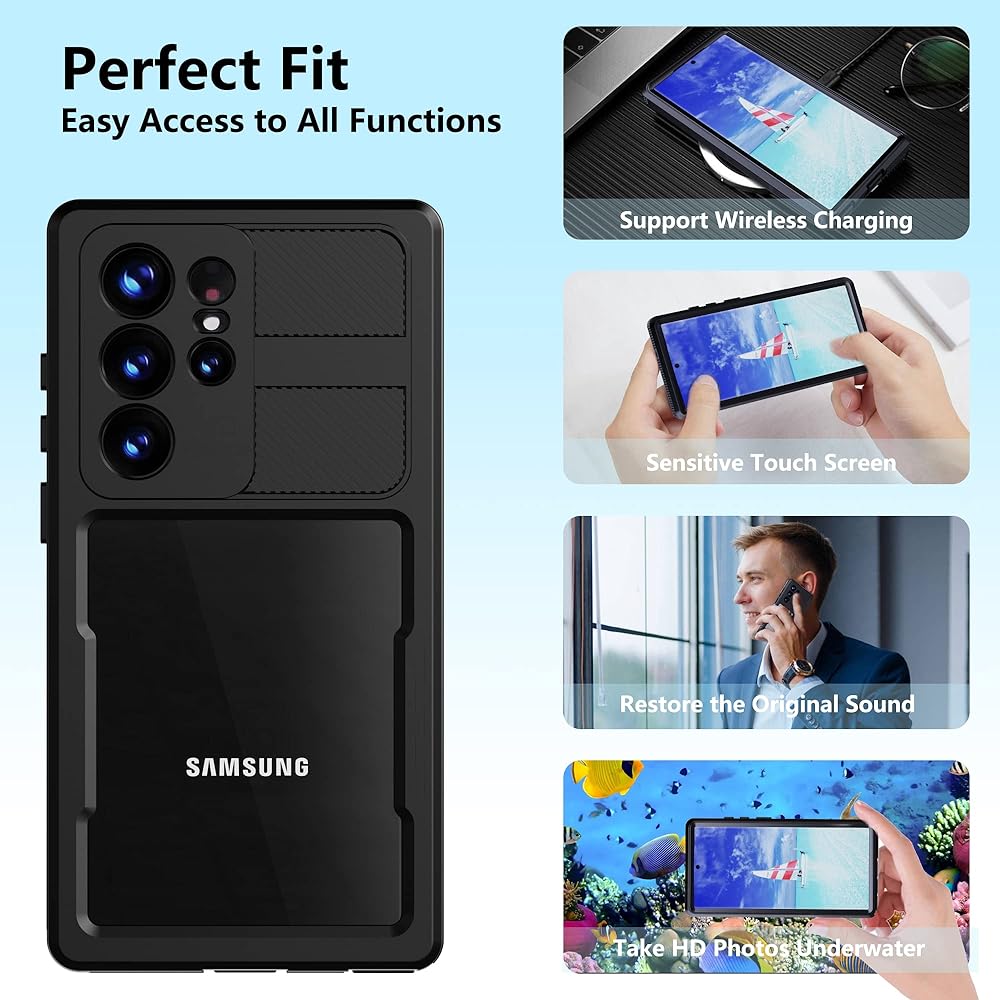IP68 مقاوم للماء - جراب S23 Ultra مقاوم للماء معتمد من IP68، يحمي هاتفك من الماء. مقاومة للماء حتى عمق 6.6 قدم/2 متر لمدة ساعة واحدة. مثالية لأي أنشطة تحت الماء والرياضات الخارجية والاستخدام اليومي.