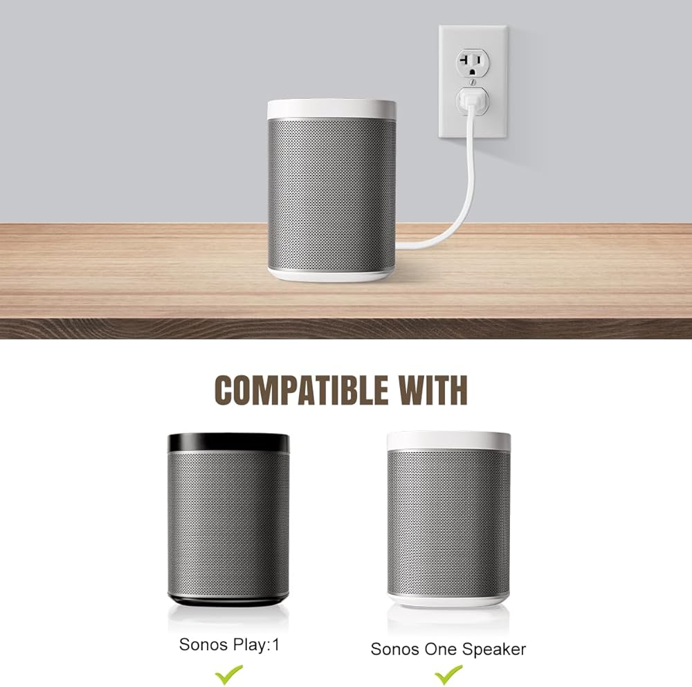 كابل بديل مثالي: كابل الطاقة مناسب بشكل خاص كبديل للكابل المكسور أو ككابل احتياطي. متوافق تمامًا مع مكبرات الصوت Sonos One وSonos One SL وSonos Play 1