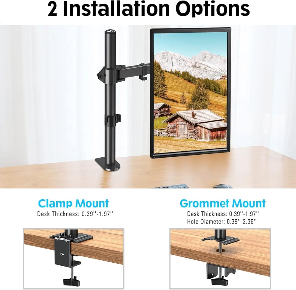 سهل التجميع - سهل التركيب مع مشبك على شكل حرف C أو قواعد جروميت قابلة للتبديل. يتوفر المشبك الأكبر على شكل حرف C عند الطلب وهو مناسب لسمك المكتب الذي يزيد عن 1.97 انش. لوحة فيسا قابلة للإزالة تجعل من السهل تركيب أو إزالة شاشتك. يستغرق التركيب مع تعليمات واضحة أقل من 15 دقيقة من البداية إلى النهاية.