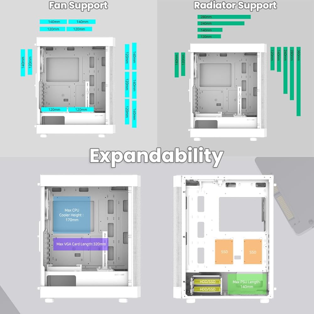 تعد حافظة الكمبيوتر زلمان i4 ATX Mid-Tower حافظة كمبيوتر عالية الأداء مصممة للاعبين وعشاق الكمبيوتر الذين يحتاجون إلى الموثوقية والوظائف والجمال في بنيتهم. بفضل تصميمه الأنيق والأنيق، يتميز i4 بلوحة جانبية شبكية كاملة ولوحة أمامية شبكية كاملة لتدفق الهواء والتبريد الأمثل، مما يسمح بتبديد الحرارة بكفاءة وتقليل تراكم الغبار. تدعم الحافظة اللوحات الأم ايه تي اكس ومايكرو ايه تي اكس وميني اي تي اكس، مما يجعلها متعددة الاستخدامات لتكوينات البناء المختلفة. تتميز بست مراوح مثبتة مسبقًا مقاس 120 ملم، بما في ذلك ثلاث مراوح أمامية وثلاث مراوح خلفية، لتعزيز تدفق الهواء وأداء تبريد مثالي.