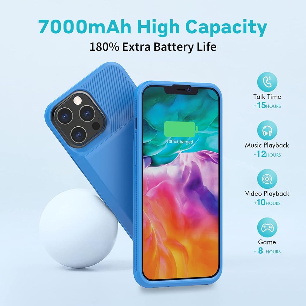 🔋 【حافظة شحن مطورة 】سعة كبيرة حقيقية مطورة تبلغ 7000 مللي أمبير في الساعة، مما يوفر لك شحنًا آمنًا وموثوقًا في أي وقت. نحن مختلفون عن الآخرين، فنحن نستخدم العملية الأصلية لتصنيع منفذ الشحن، متوافق بنسبة 100%، وأكثر قوة ومتانة، وليس من السهل كسره. ✅ مناسب فقط لهاتف iphone 13 Pro Max (6.7 بوصة)، ❌لا يعمل مع 13 mini (5.4 بوصة)، 13/13 Pro (6.1 بوصة).❌ لا يدعم CarPlay والشحن اللاسلكي.