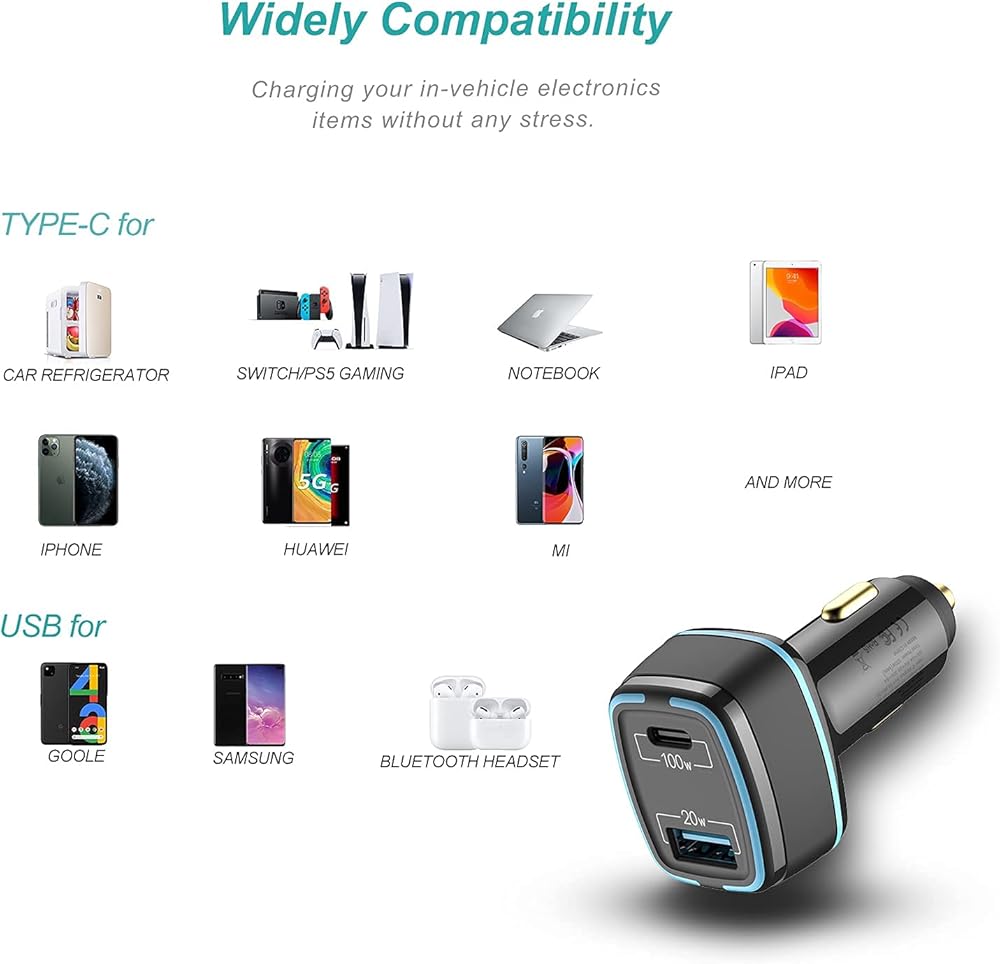 توافق واسع: شاحن USB للسيارة متوافق مع جميع الأجهزة التي تعمل بالطاقة PD وUSB تقريبًا، بما في ذلك على سبيل المثال لا الحصر، MacBook Pro/Air/iPhone 13/12/Pro/Max/iPad Pro/Samsung Galaxy/GooglePixel/Oneplus/Tablet/Nintendo Switch/Driving مسجل / كاميرا / سماعة أذن، إلخ. بسرعة فائقة وسهولة التعرف على أجهزتك المحمولة، لتوفير كفاءة الشحن المثالية.