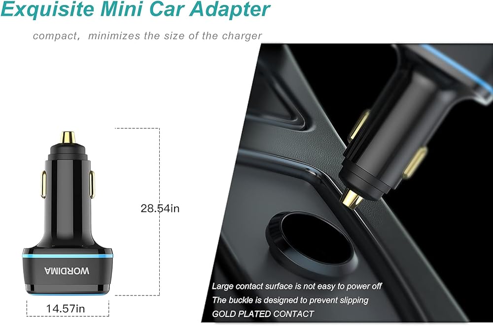 تصميم سهل الاستخدام: يساعد تصميم شاحن هاتف السيارة مع فتحة LED الناعمة على تحديد موقع المنافذ دون تشتيت الانتباه، وهو أكثر ملاءمة لشحن أجهزتك في الضوء الخافت. وضع ولاعة السجائر مناسب تمامًا في 99% من موديلات السيارات مع عامل الشكل المدمج، مما يضمن الشحن بثبات حتى على الطرق الوعرة.