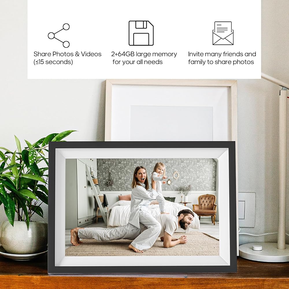 إطار صورة رقمي 64 جيجابايت، إطار صور رقمي 10.1 بوصة 1280x800 IPS HD يعمل باللمس واي فاي، سلس للغاية، إعداد سهل لمشاركة الصور أو الفيديو عن بعد، هدية للأم والأب والصديق والعائلة