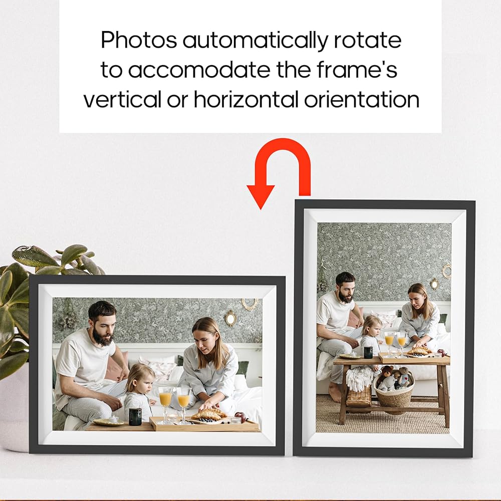 【شاشة لمس IPS】يتميز إطار الصورة الرقمي WiFi مقاس 10.1 بوصة بشاشة لمس IPS عالية الجودة بدقة 1280*800. يمكنه عرض صورة واضحة وحيوية مذهلة ويوفر لك تجربة بصرية غير عادية من زوايا كاملة. دقة الألوان المذهلة ستتجاوز حيويتك وجاذبيتك بنسبة 100%.