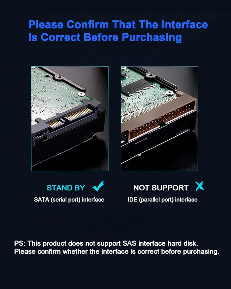 • توافق واسع: مصمم لجميع محركات الأقراص الصلبة ساتا 2.5 بوصة/3.5 بوصة SSD و DVD-ROM و CD-ROM و DVD+RW حتى 12 تيرابايت. متوافق مع ويندوز اكس بي / 8.1 / 8/10 وماك او اس 10 أو أحدث ولينكس وما إلى ذلك. يدعم أجهزة بلاي ستيشن 4/اكس بوكس/التلفزيون/أجهزة المراقبة.