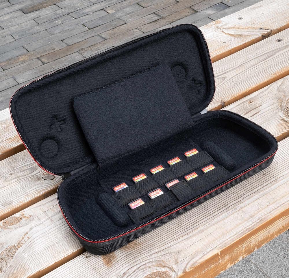 حقيبة مفاتيح كبيرة للغاية لنظام ألعاب نينتندو سويتش، تناسب لوحة هوري سبليت برو أو وحدة تحكم نينتندو برو، محول تيار متردد لشاحن الحائط 8 حوامل بطاقات ألعاب - أحمر/أسود