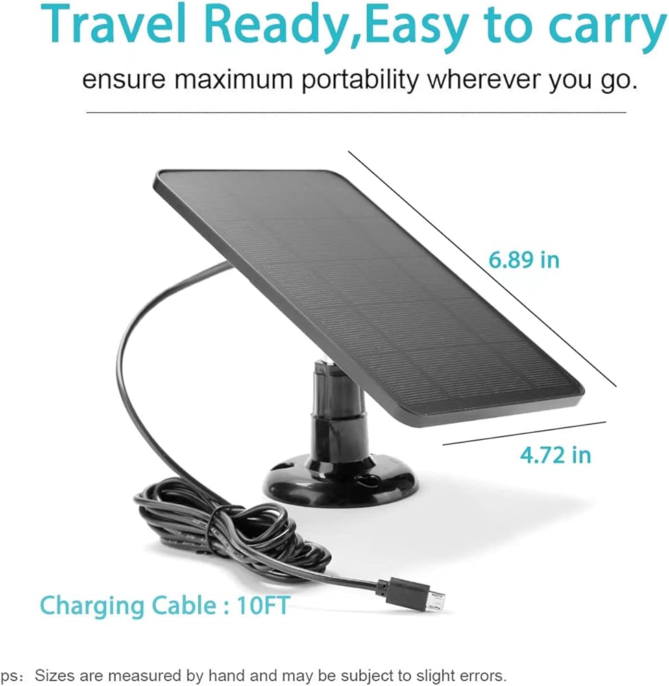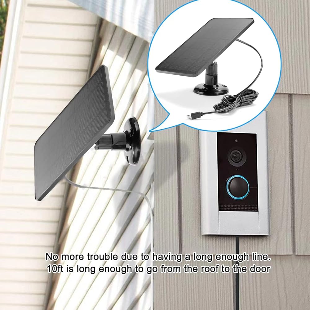✅【360° Adjustable, Flexible Use 】 Solar panel Suitable for products such as rechargeable outdoor security cameras and outdoor doorbells, 360° adjustable stand and 10 ft charging cable, install the solar panel in the most direct sunlight position, provide continuous, uninterrupted power for your outdoor camera.